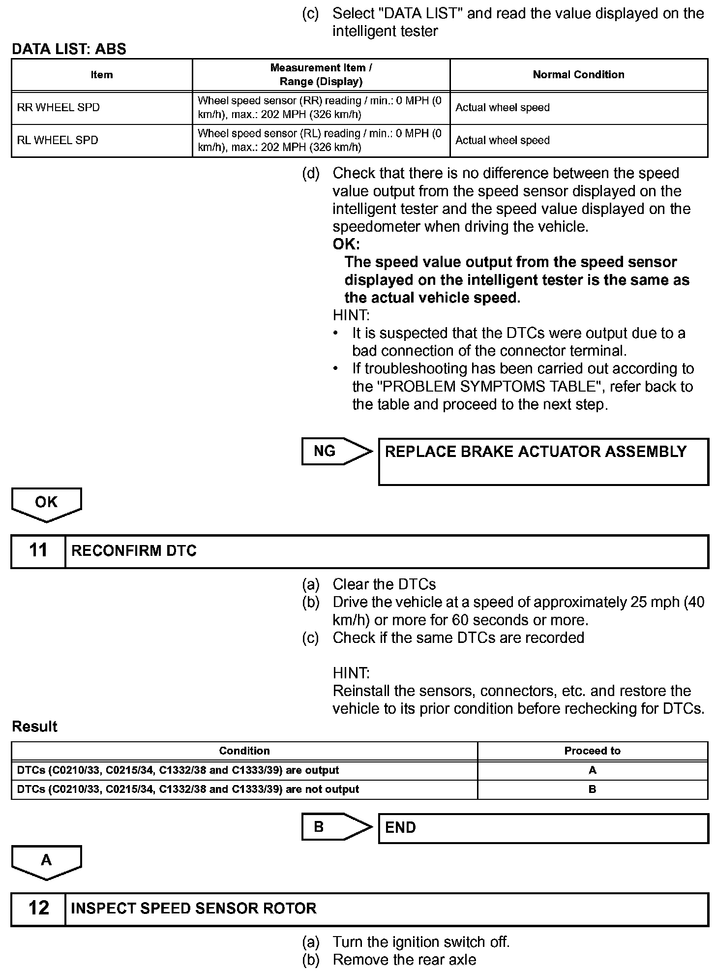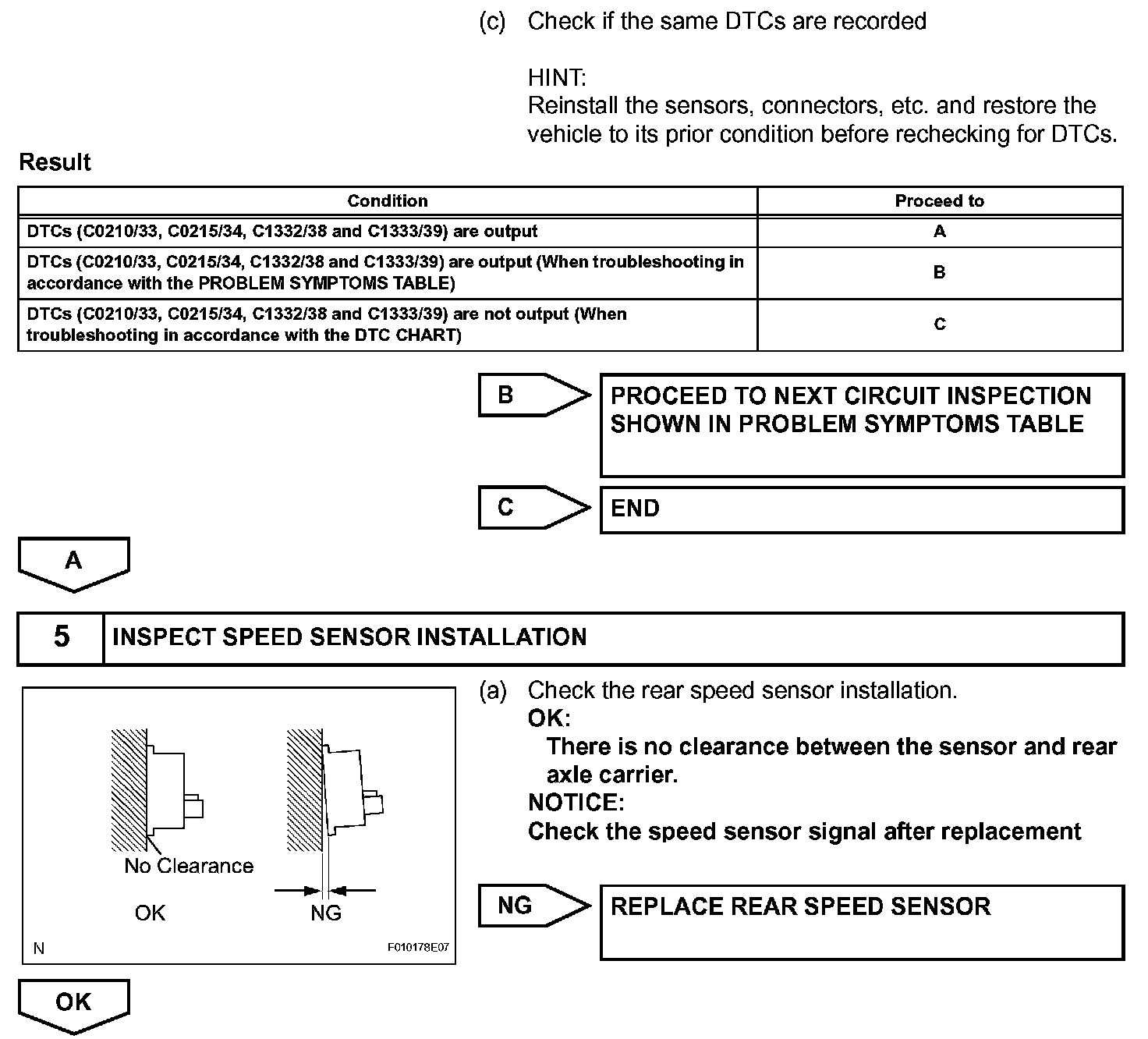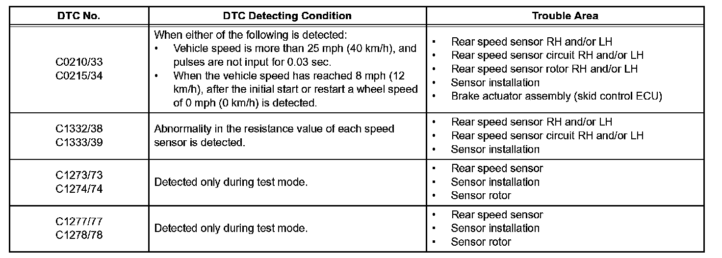 DTC No. C0210/33 and C1332/38 are for the rear speed sensor RH.