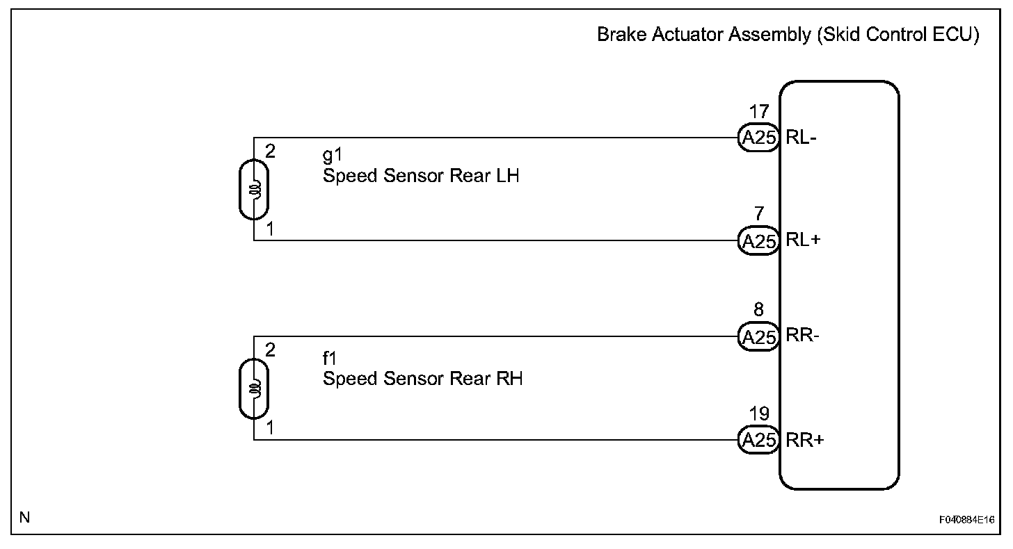 The speed sensors detect wheel speed and transmit the signals to the skid control ECU. These signals are used for control of the ABS control system. Each of the front and rear rotors has 48 serrations.