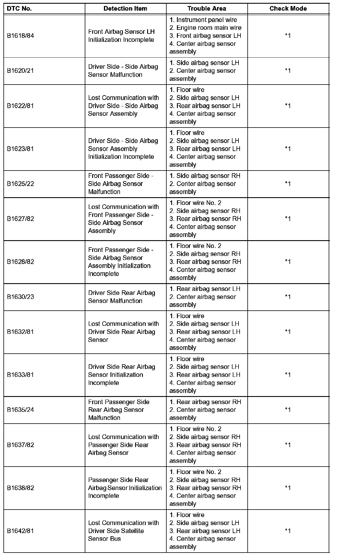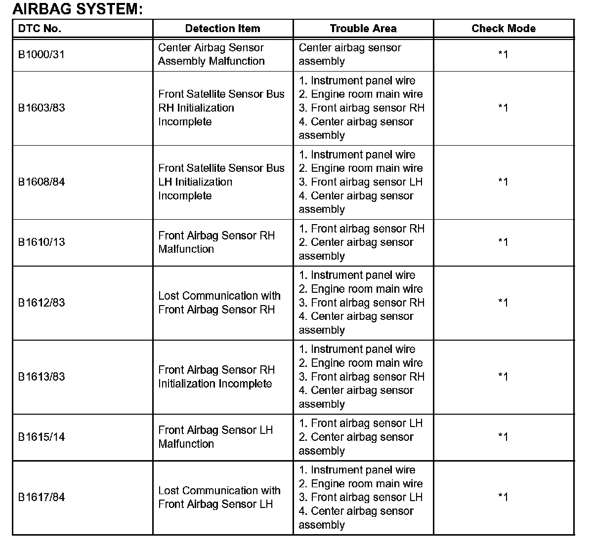*1: DTC is not corresponding to the check mode.