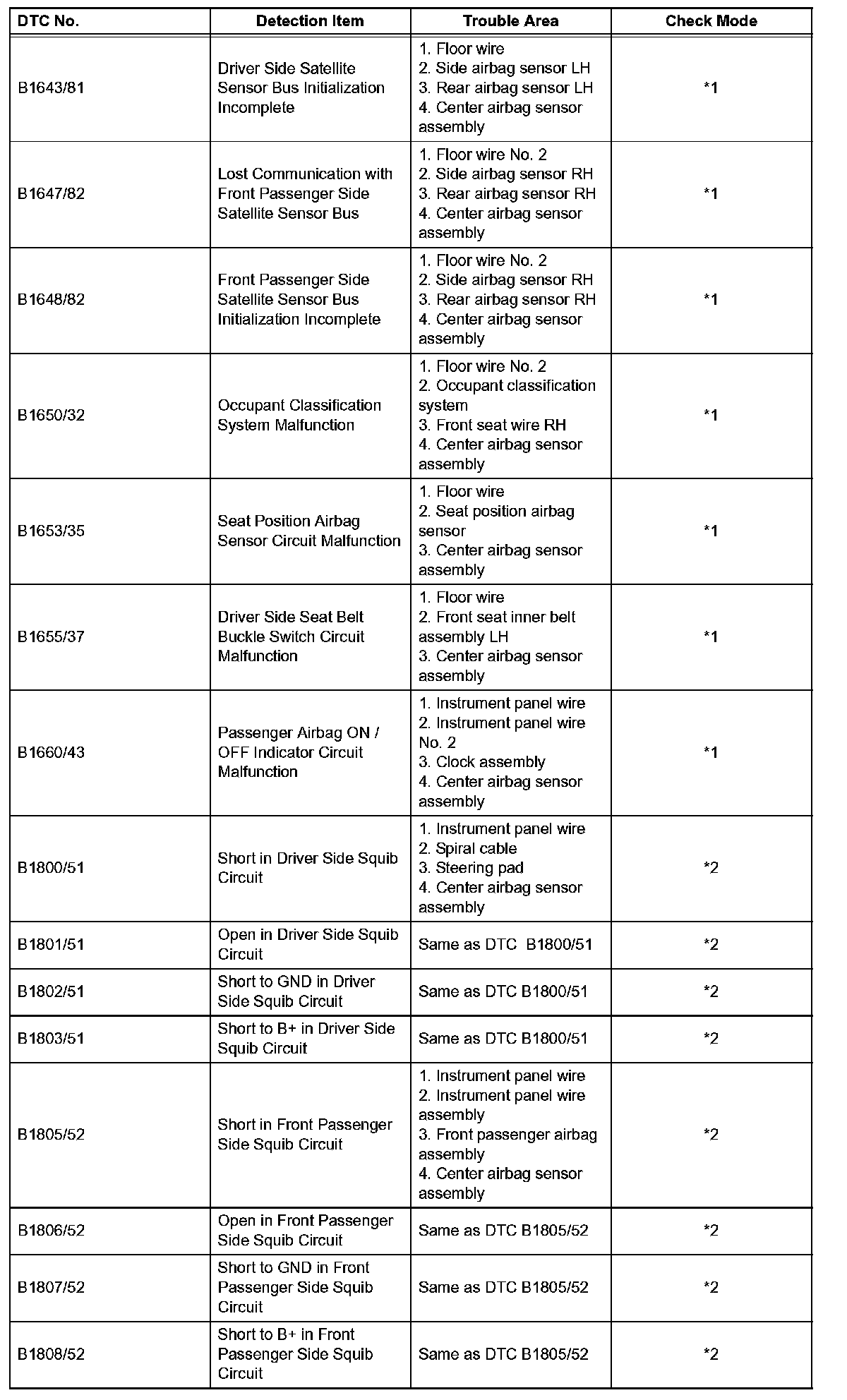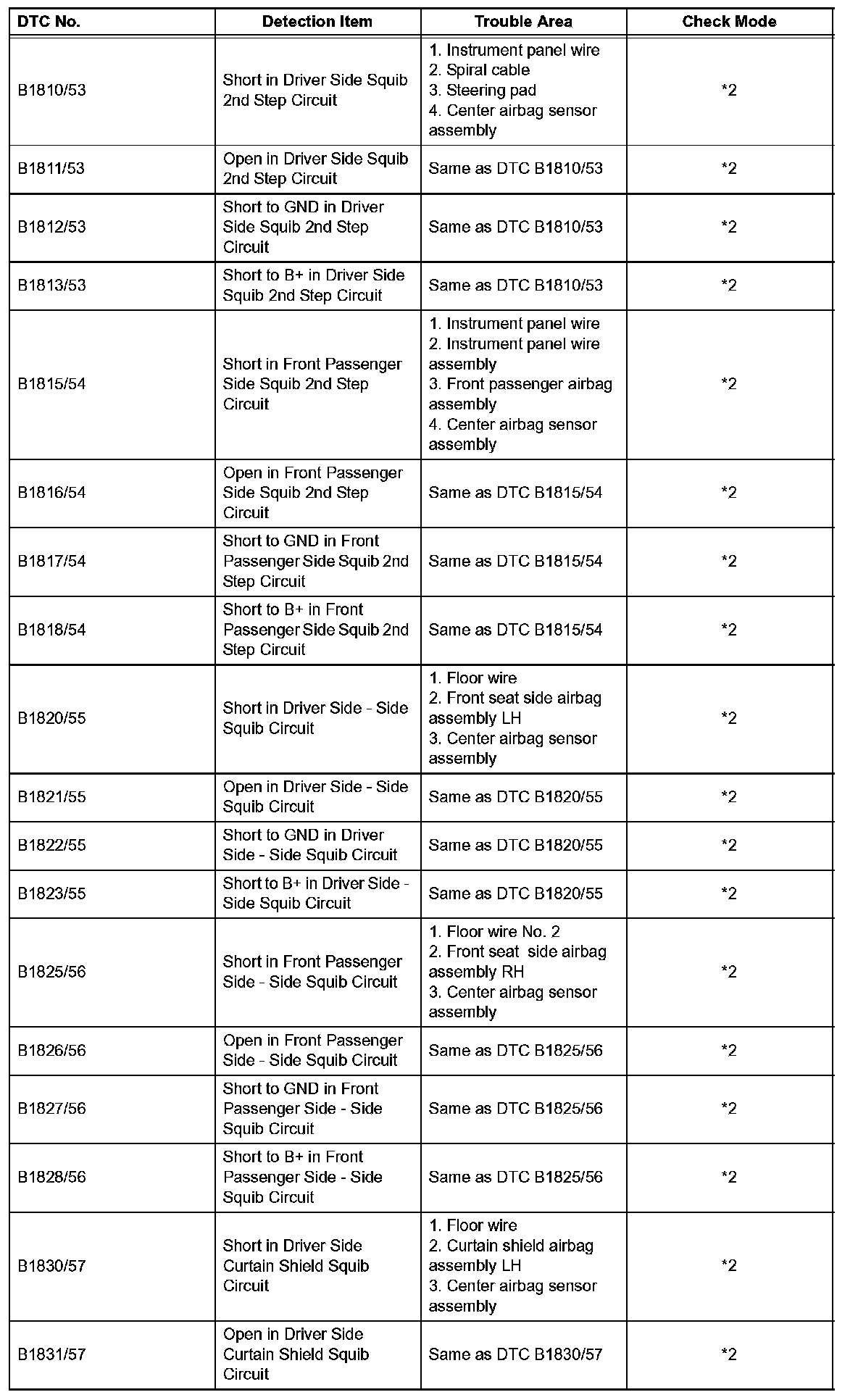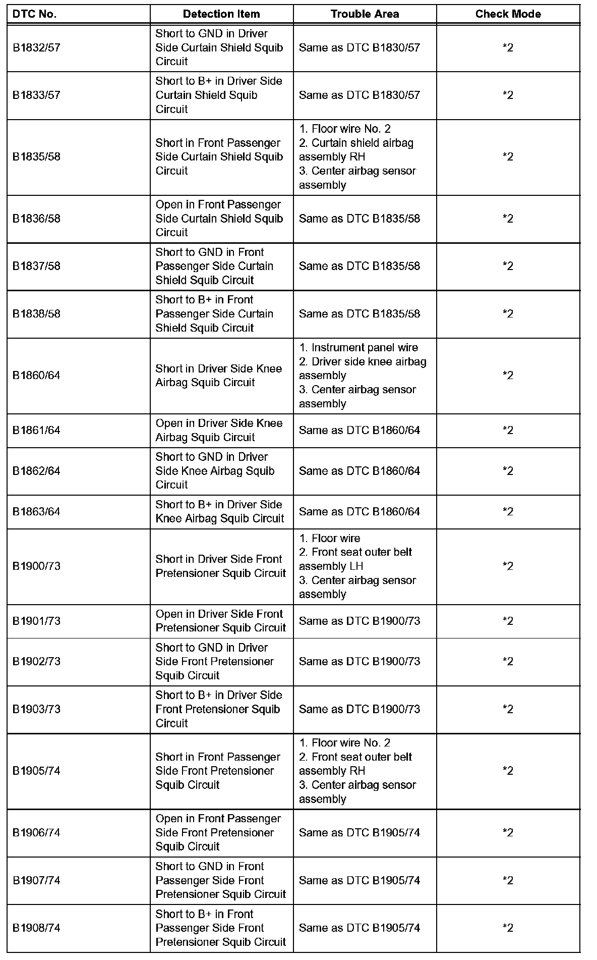 *2: DTC is corresponding to the check mode.