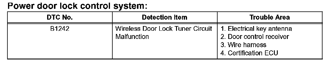 If a trouble code is indicated during the DTC check, check the circuit listed for that code in the table.