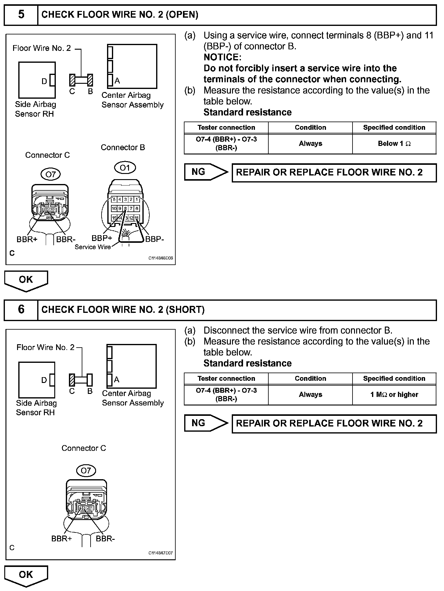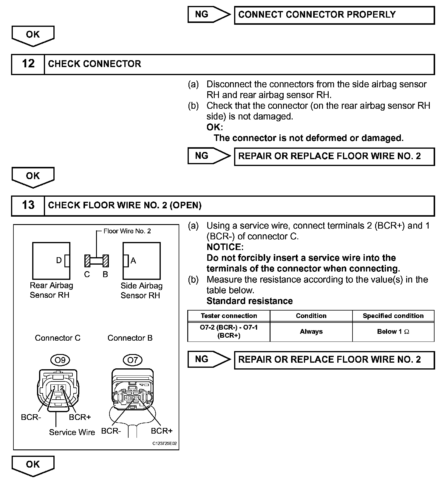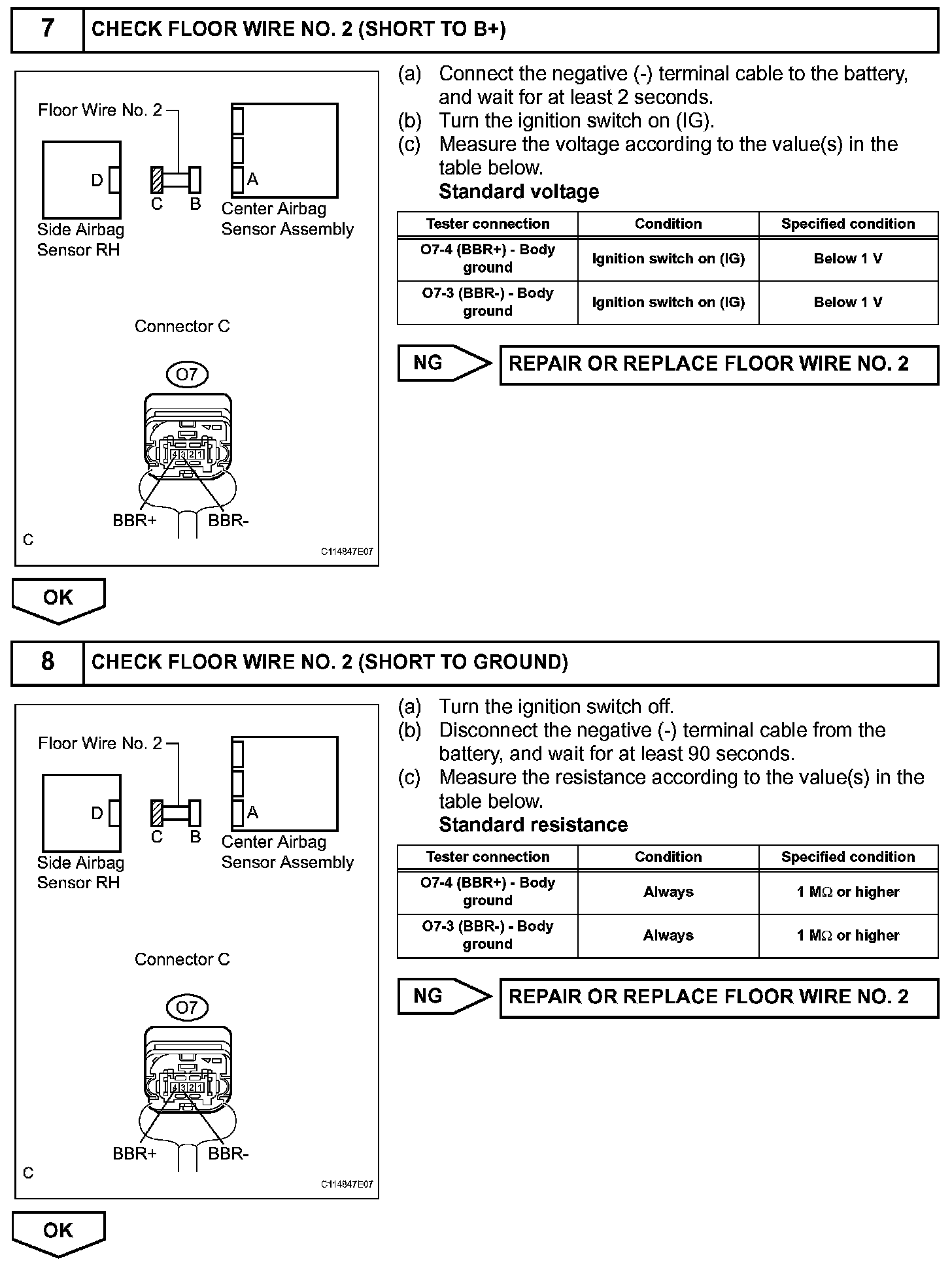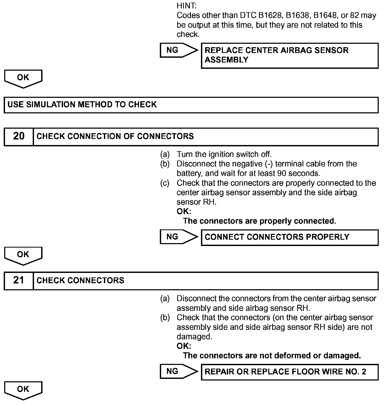 DTC B1627/82, B1628/82, B1637/82, B1638/82, B1647/82, or B1648/82 is recorded when a malfunction is detected in the circuit for the side collision sensor RH.