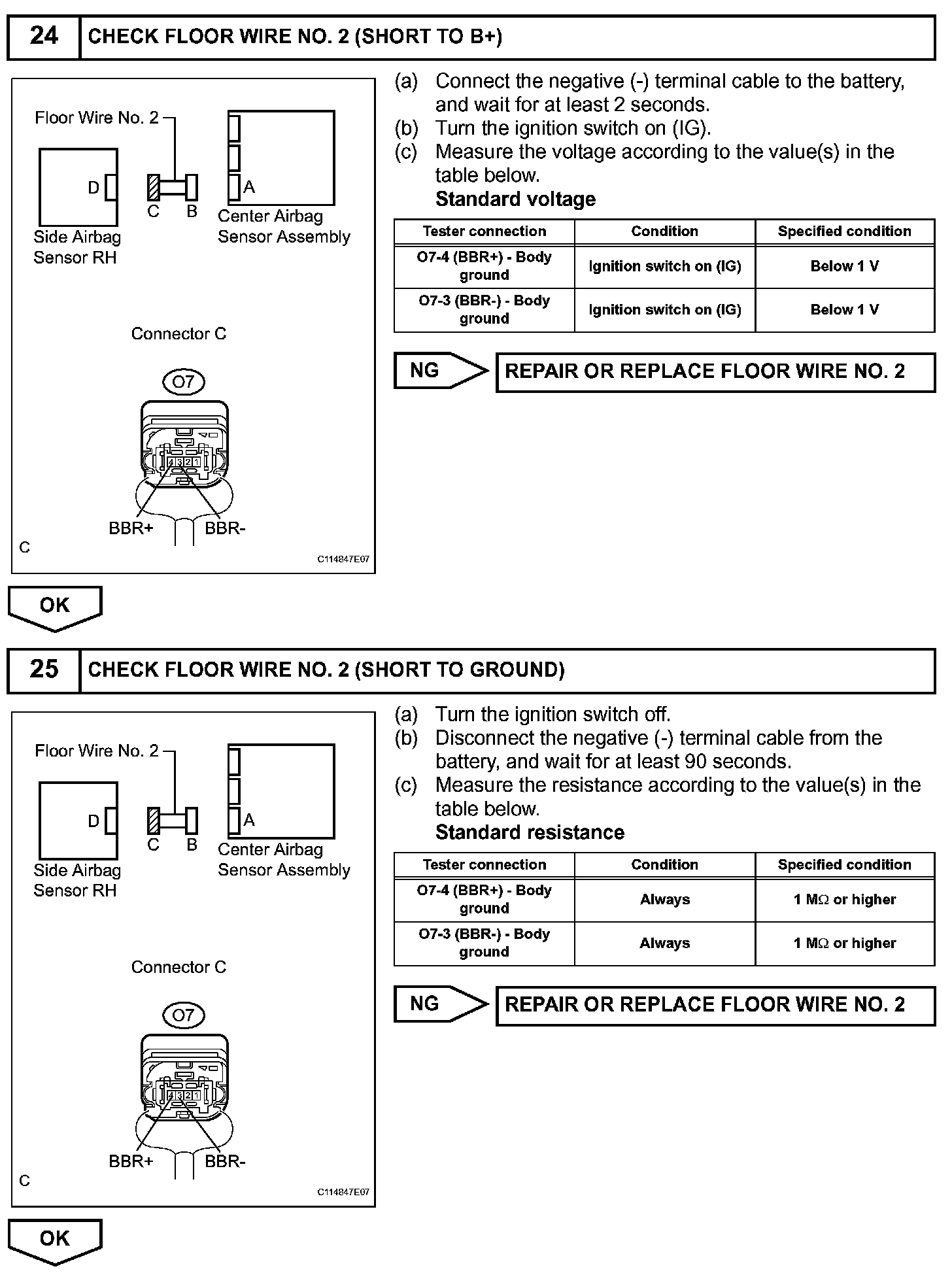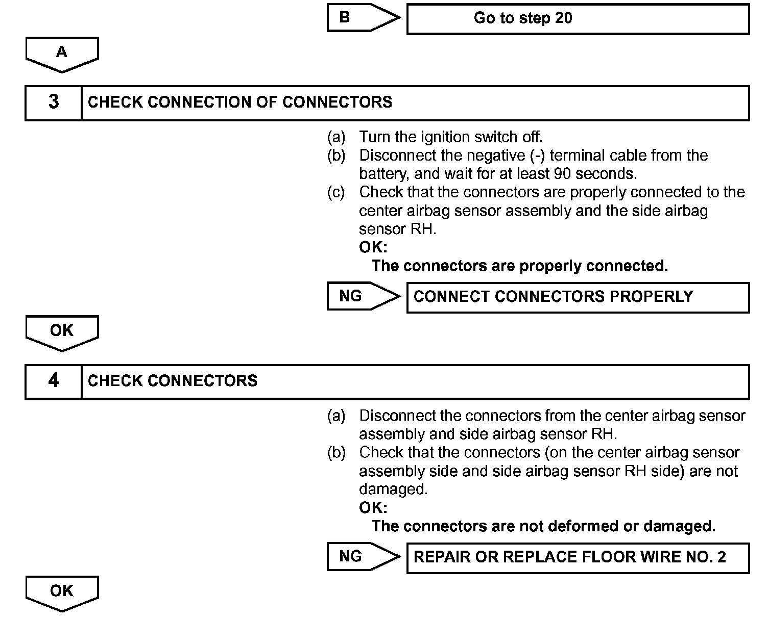 The circuit for the side collision sensor RH (to determine deployment of the front seat side airbag assembly RH and curtain shield airbag assembly RH) is composed of the center airbag sensor assembly, side airbag sensor RH, and rear airbag sensor RH.