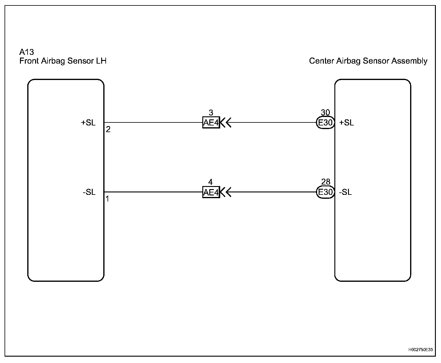 The front airbag sensor LH circuit consists of the center airbag sensor assembly and front airbag sensor LH.