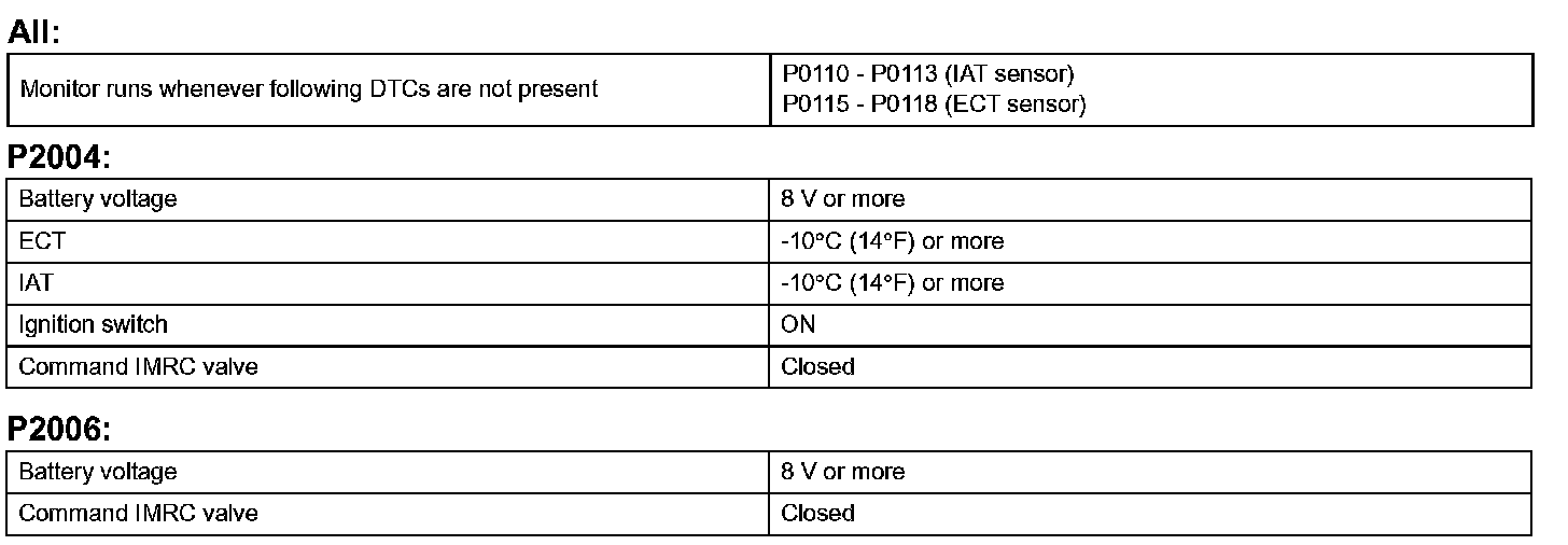 DTC P2004 Intake Manifold Runner Control Stuck Open (Bank 1)DTC P2006 Intake Manifold Runner Control Stuck Closed (Bank 1)