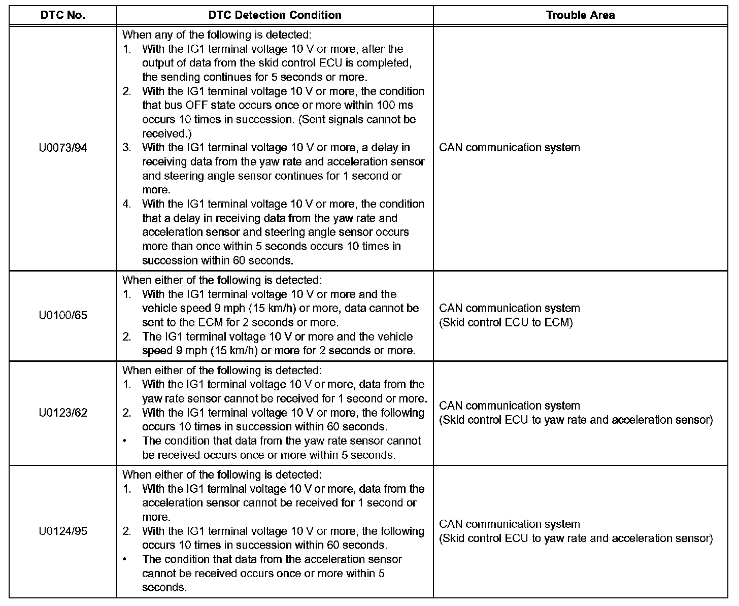 DTC U0123/62 Lost Communication with Yaw Rate Sensor ModuleDESCRIPTION