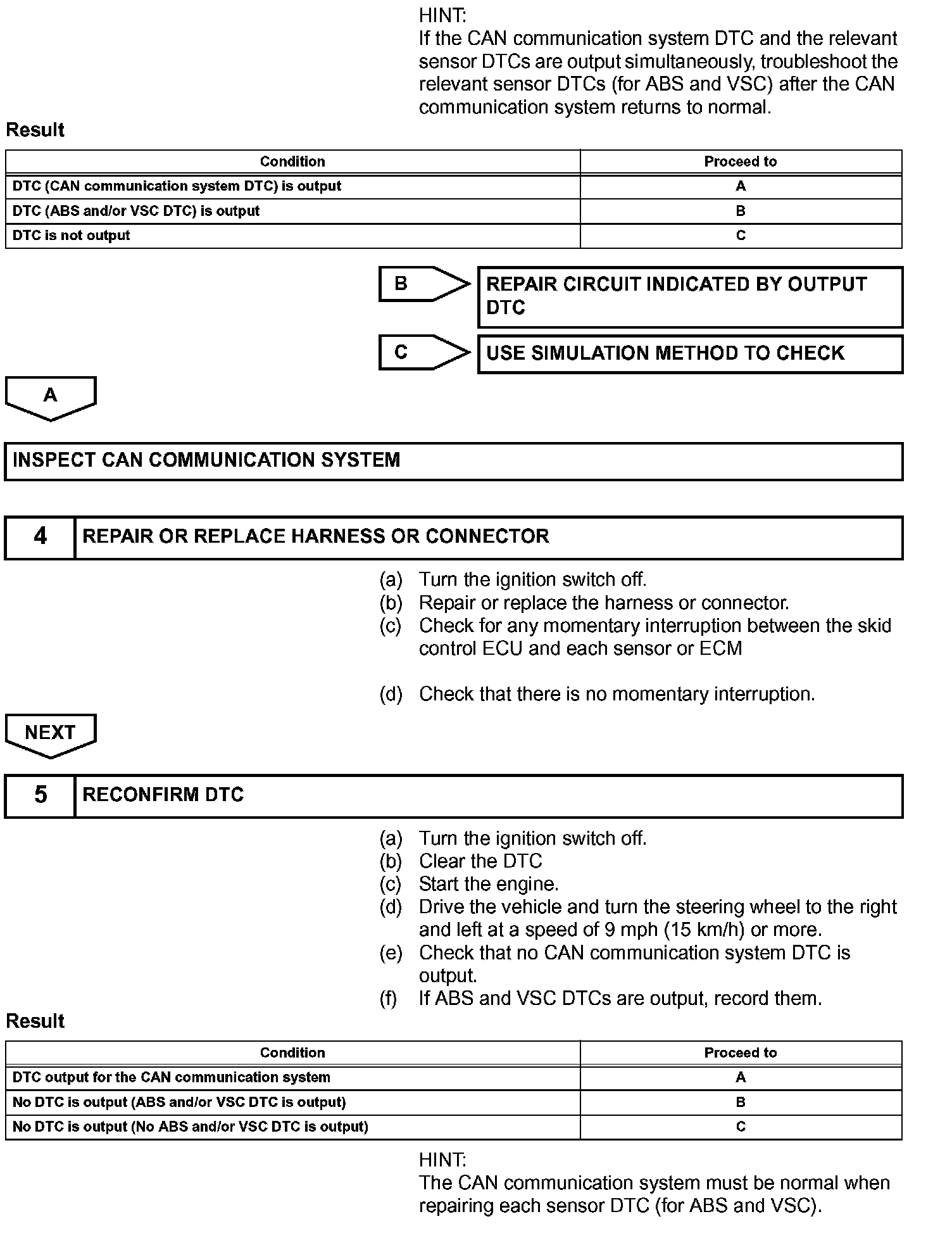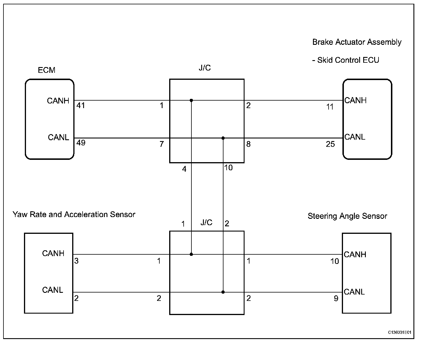 The skid control ECU receives the signals from the ECM, steering angle sensor, and yaw rate and acceleration sensor via the CAN communication system.