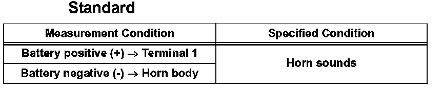 If the result is not as specified, replace the security horn assembly.
