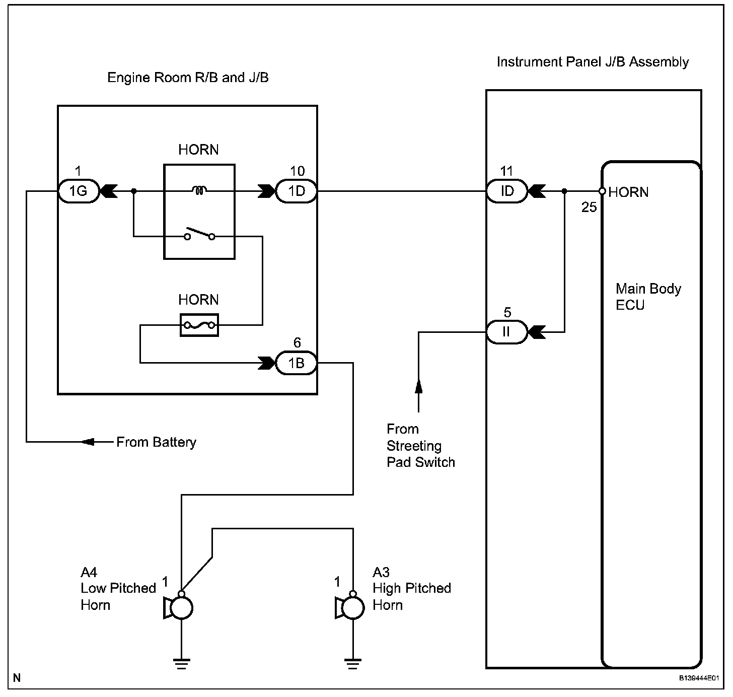When the theft deterrent system is switched from the armed state to the alarm sounding state, the main body ECU transmits a signal to cause the horn to sound at intervals of 0.4 seconds.