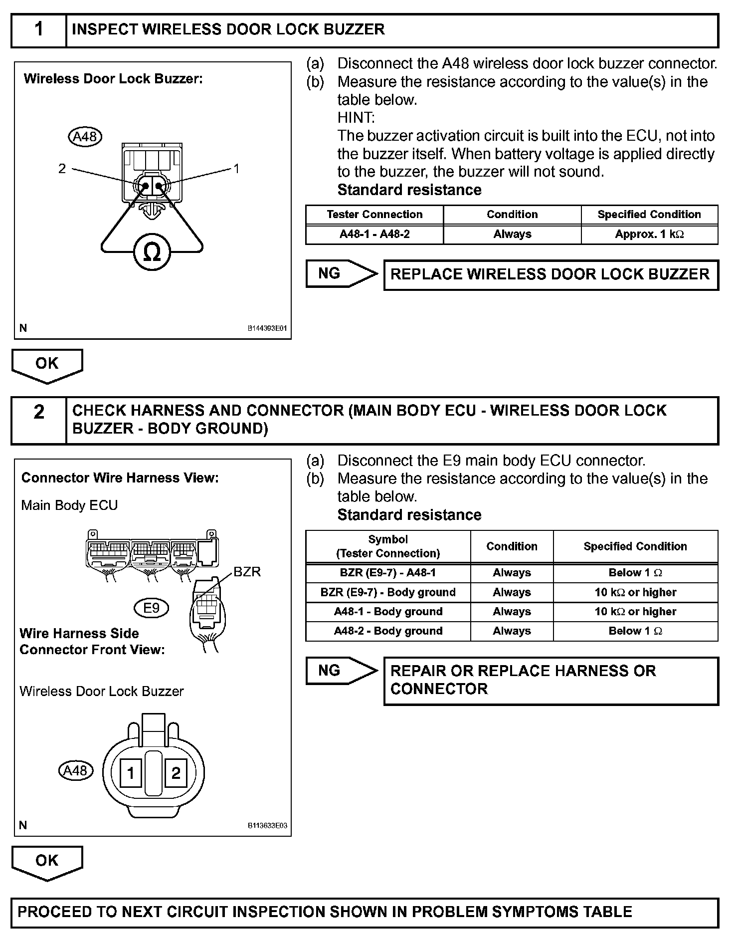 The main body ECU RH activates the wireless door lock buzzer when detecting a lock/unlock signal from the door control transmitter.