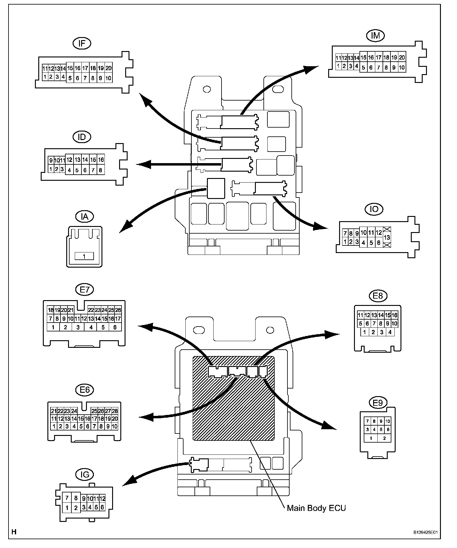 a. Disconnect the main body ECU (instrument panel J/ B) connectors.