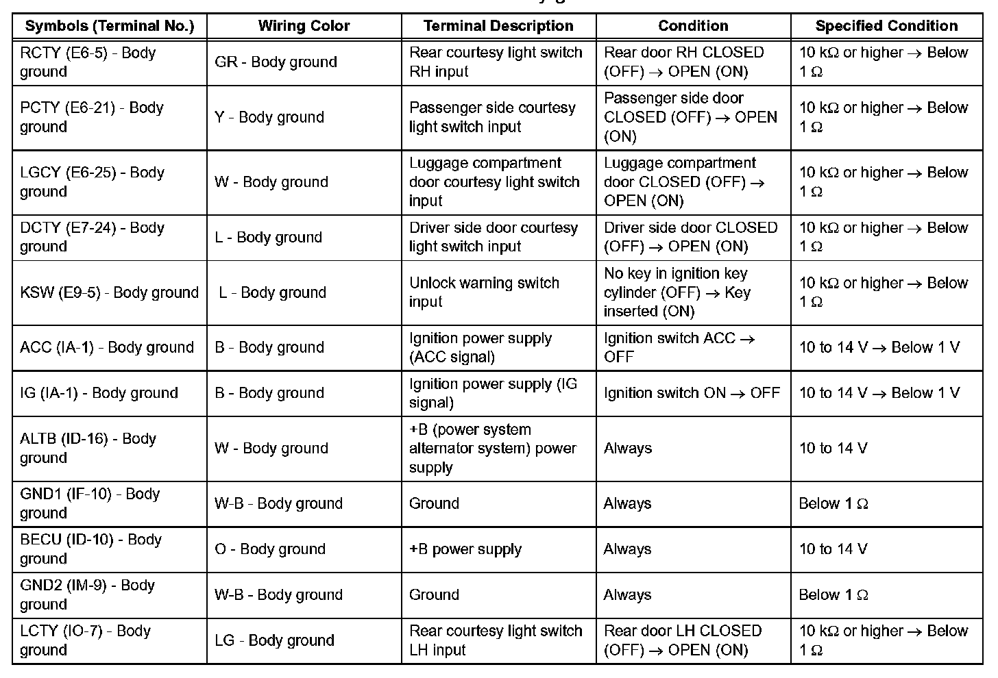 TERMINALS OF ECU1. CHECK MAIN BODY ECU (INSTRUMENT PANEL J/B)