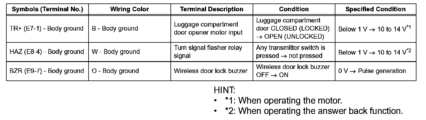 b. Measure the resistance and voltage between each terminal of the wire harness side connectors and body ground.