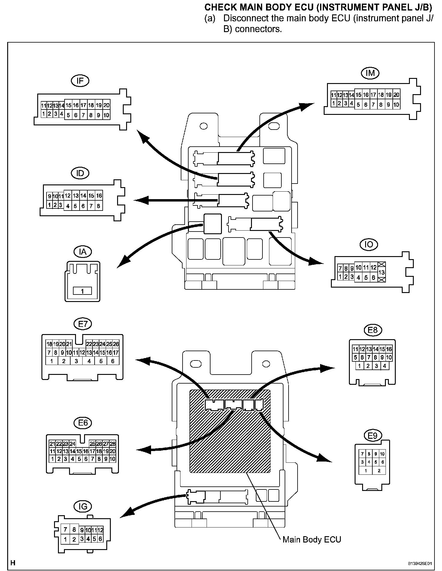 Terminals Of Control Module/Pinouts-Check Main Body ECU (Instrument Panel J/B) (Part 1):