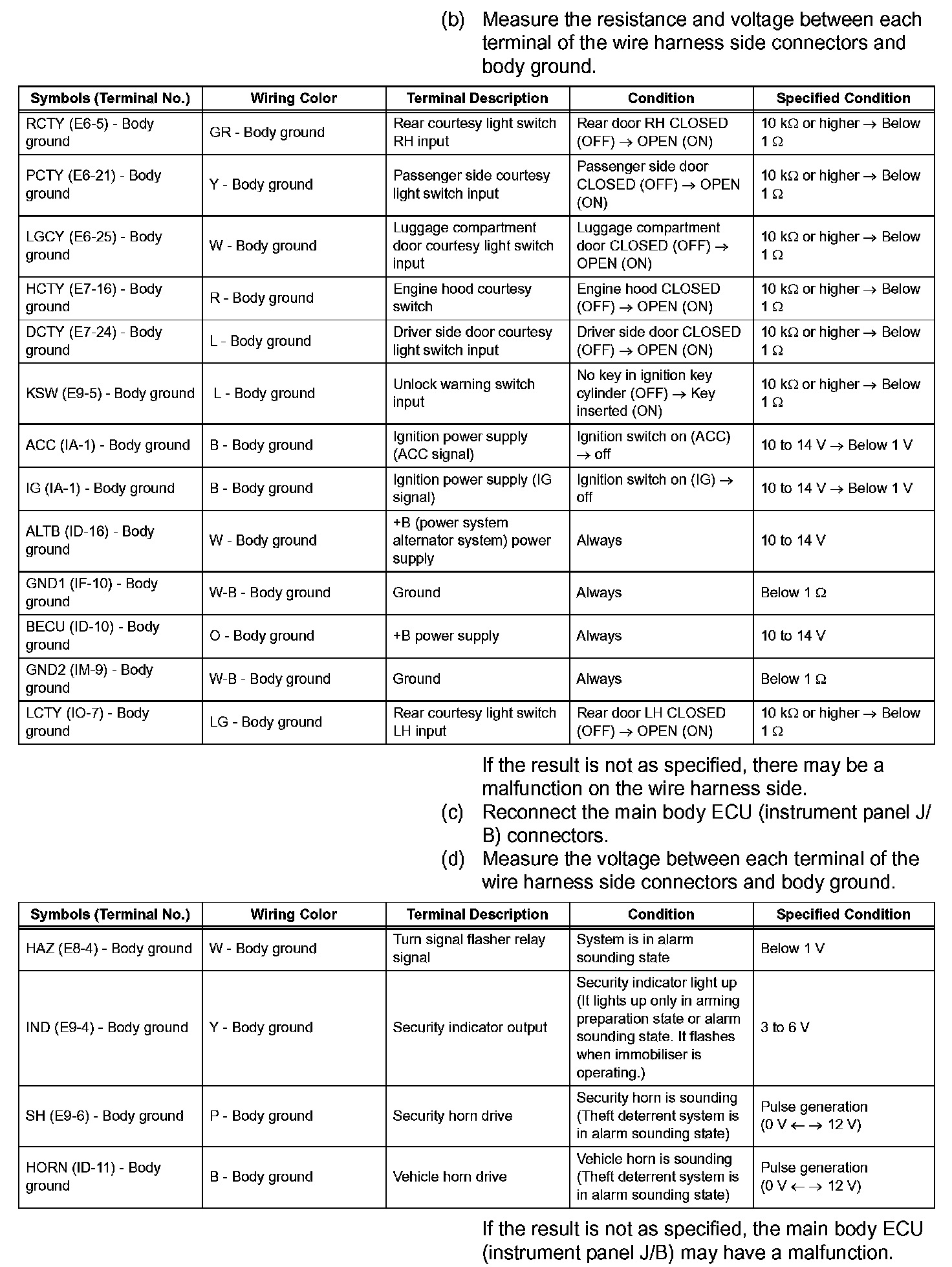 Terminals Of Control Module/Pinouts-Check Main Body ECU (Instrument Panel J/B) (Part 2):