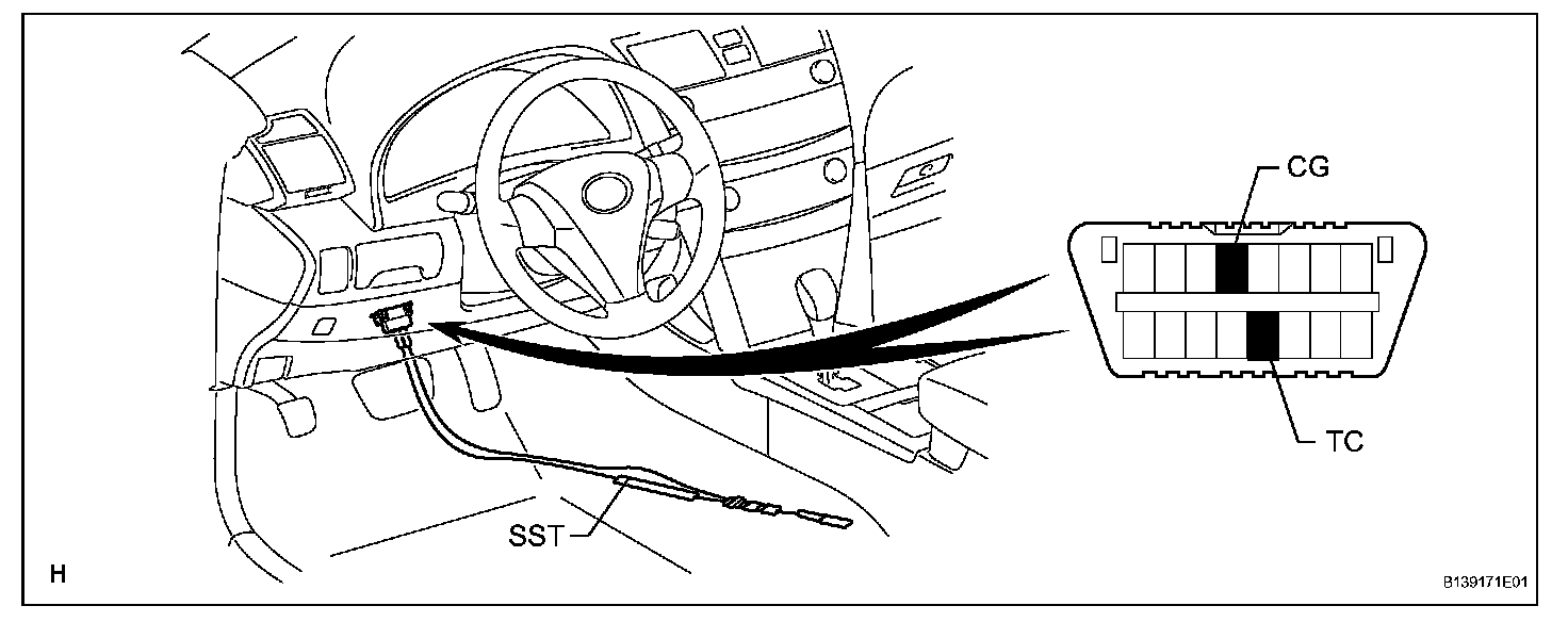 1. Using SST, connect terminals TC and CG of the DLC3.