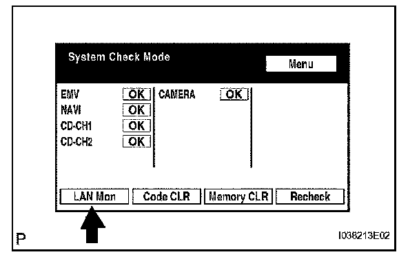 a. The "Diagnosis MENU" screen will be displayed by pressing the "Menu" switch on the "System Check Mode" screen.