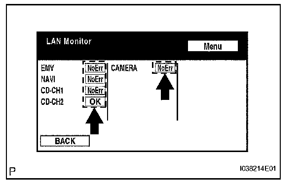 4. Confirm that all diagnostic codes are "No Err". If a code other than "No Err" is displayed, troubleshoot again.