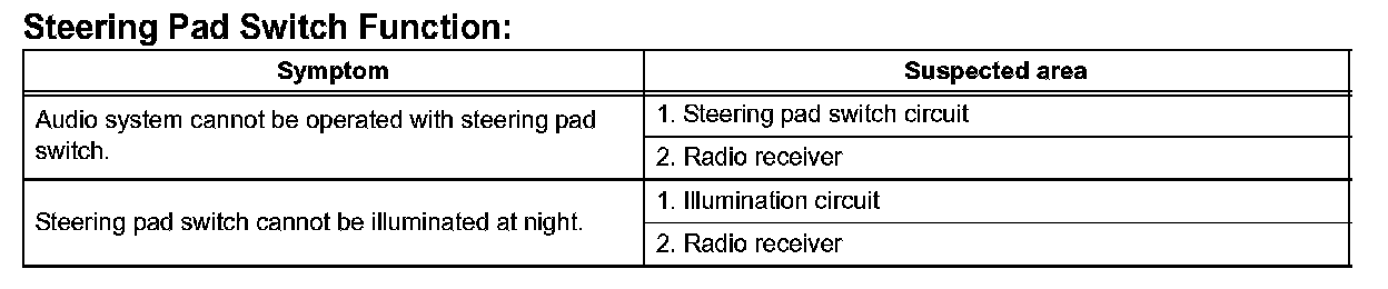Problem Symptoms Table - Steering Pad Switch Function:
