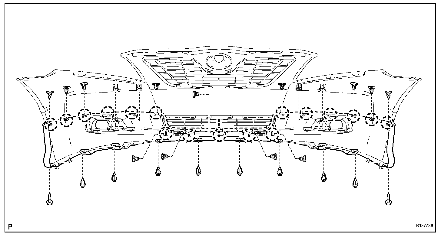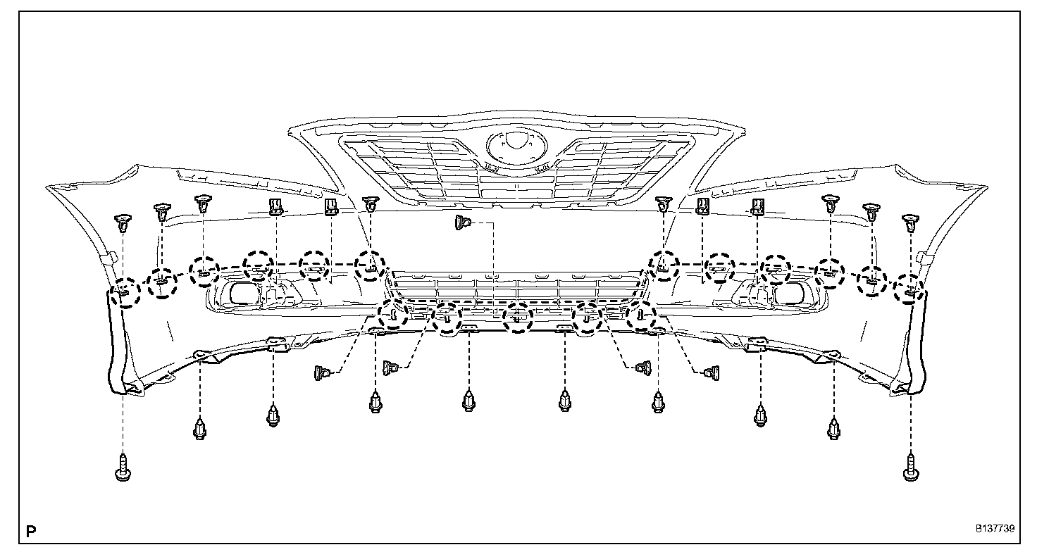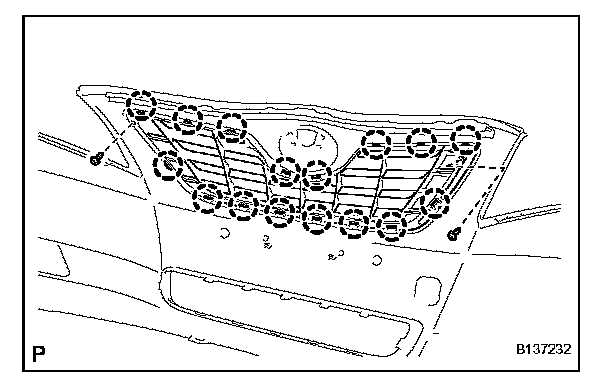 a. Disengage the 14 claws and remove the lower radiator grille.