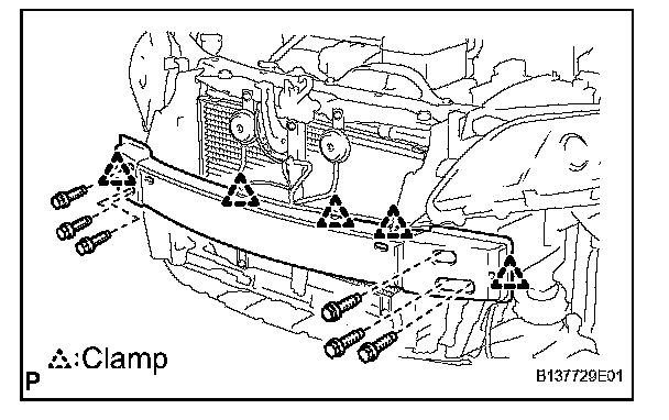 b. Remove the 6 bolts and front bumper reinforcement sub-assembly.