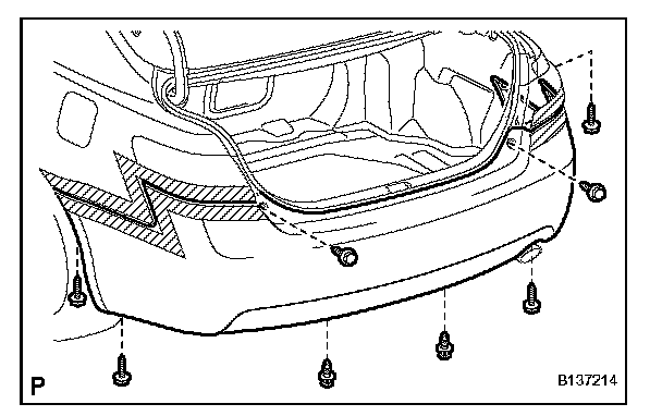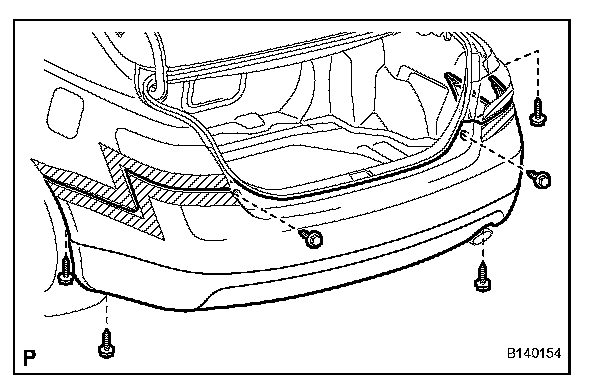 b. Install the rear bumper assembly with the 6 screws and 2 clips.
