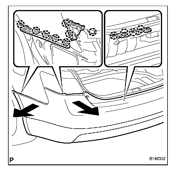 d. Disengage the 12 claws and disconnect the rear bumper assembly as shown in the illustration.