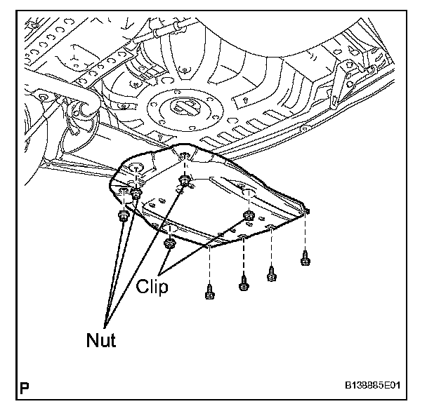 a. Remove the 4 screws, 2 clips, 3 nuts and rear floor board.