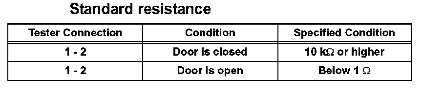 If the result is not as specified, replace the luggage compartment door lock assembly.