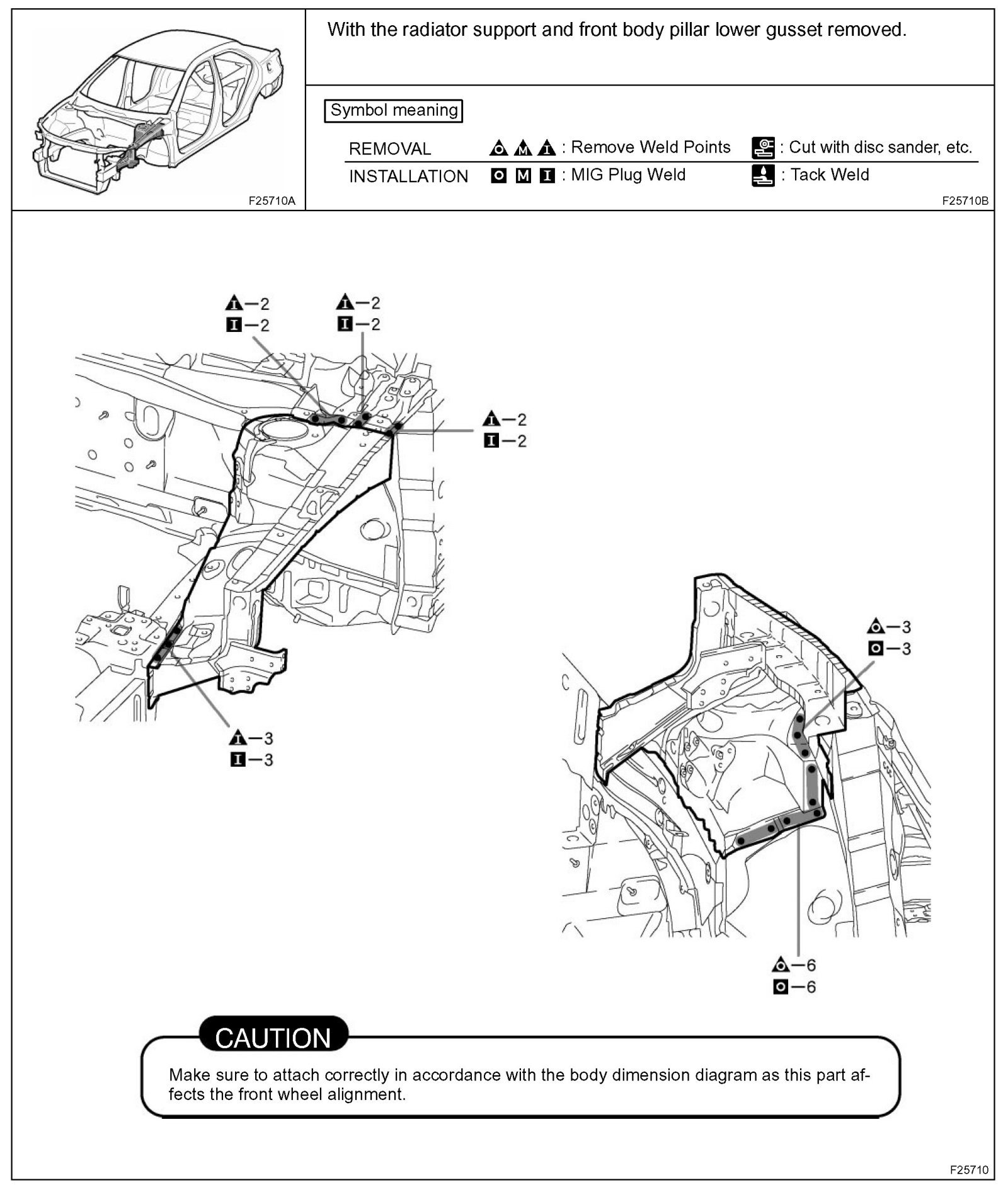 1. Inspect the fitting of the related parts around the new parts before welding. This affects the appearance of the finish.