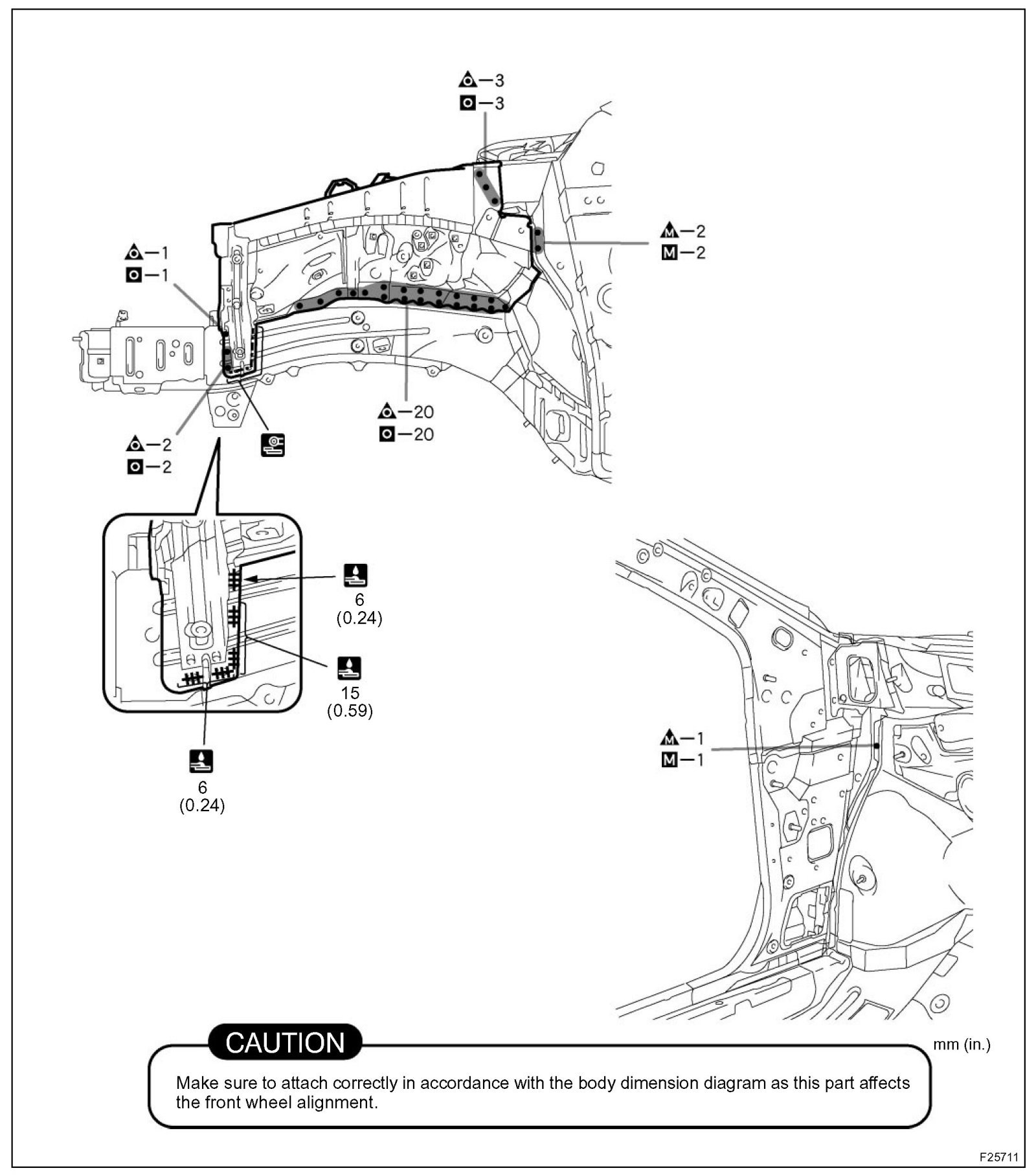 2. Temporarily install the new parts and measure each part of the new parts in accordance with the body dimension diagram. (See the body dimension diagram)