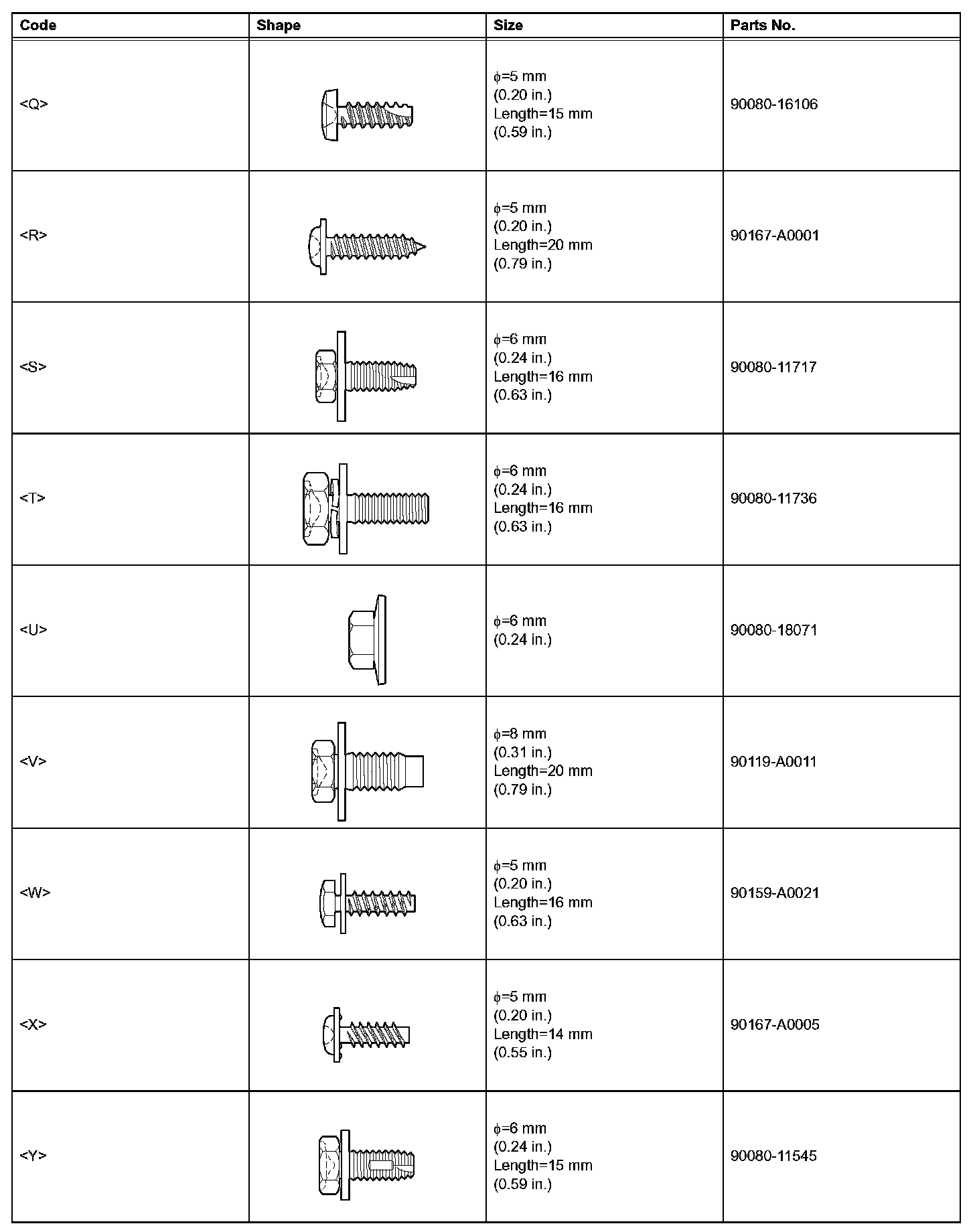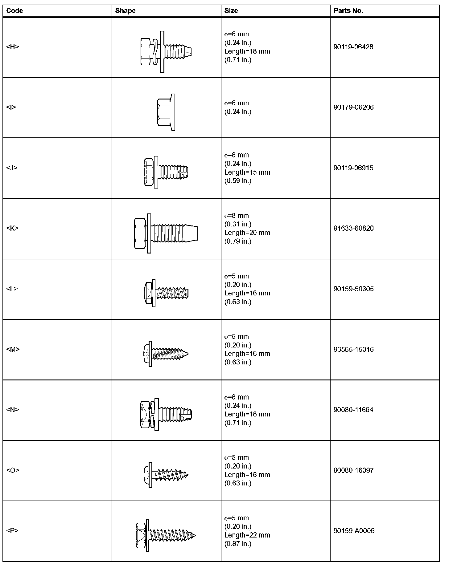 2. TABLE OF BOLT, SCREW AND NUT