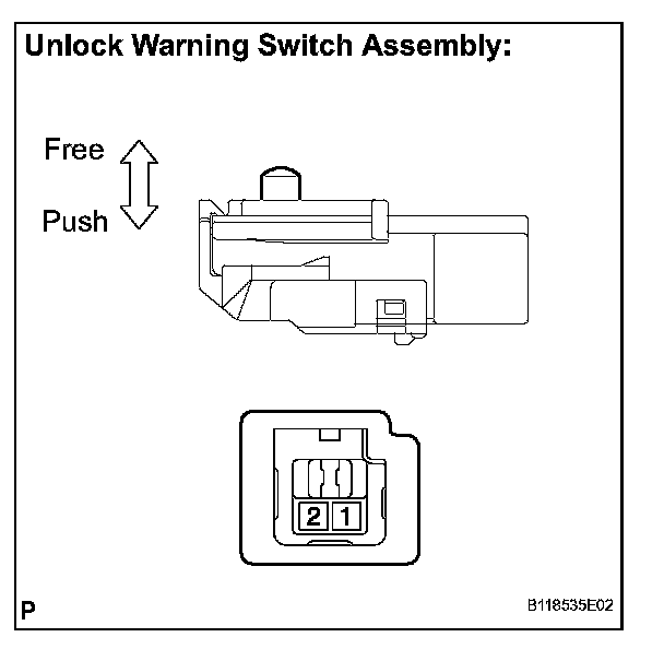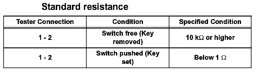 If the result as specified, replace the unlock warning switch assembly.