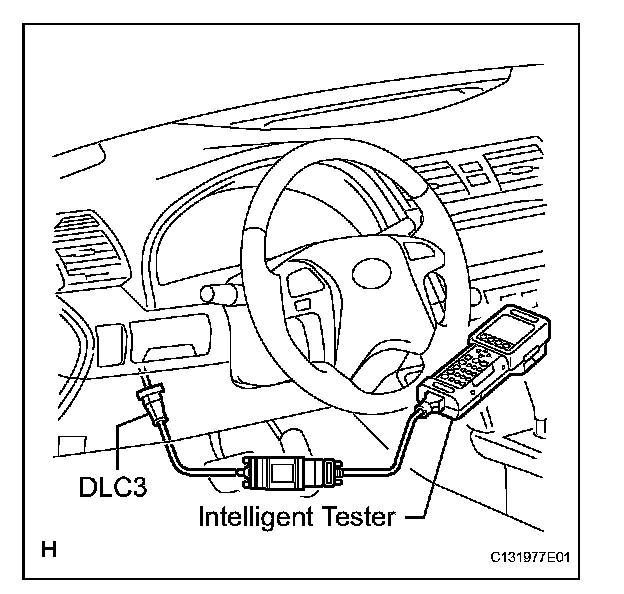 b. Connect the cable of the intelligent tester (with CAN VIM) to the DLC3, turn the ignition switch ON and attempt to use the intelligent tester. If the screen displays a communication error message, a problem exists in the vehicle or in the tester.