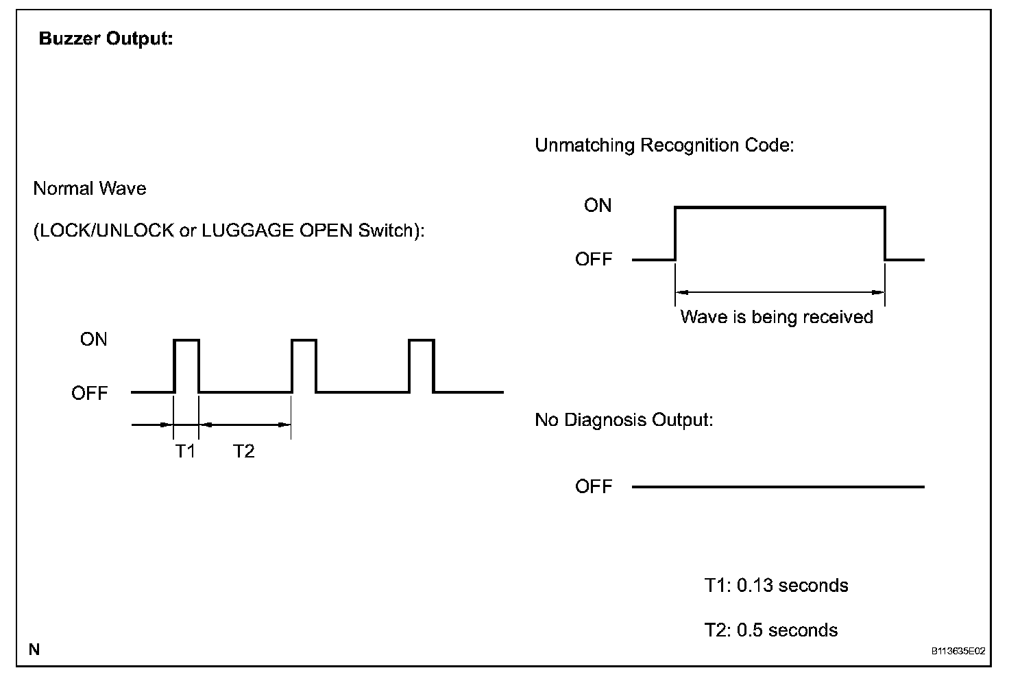 c. Check the diagnostic outputs when the door control transmitter switch is held down. The diagnostic outputs can be checked by the sound of the wireless door lock buzzer.