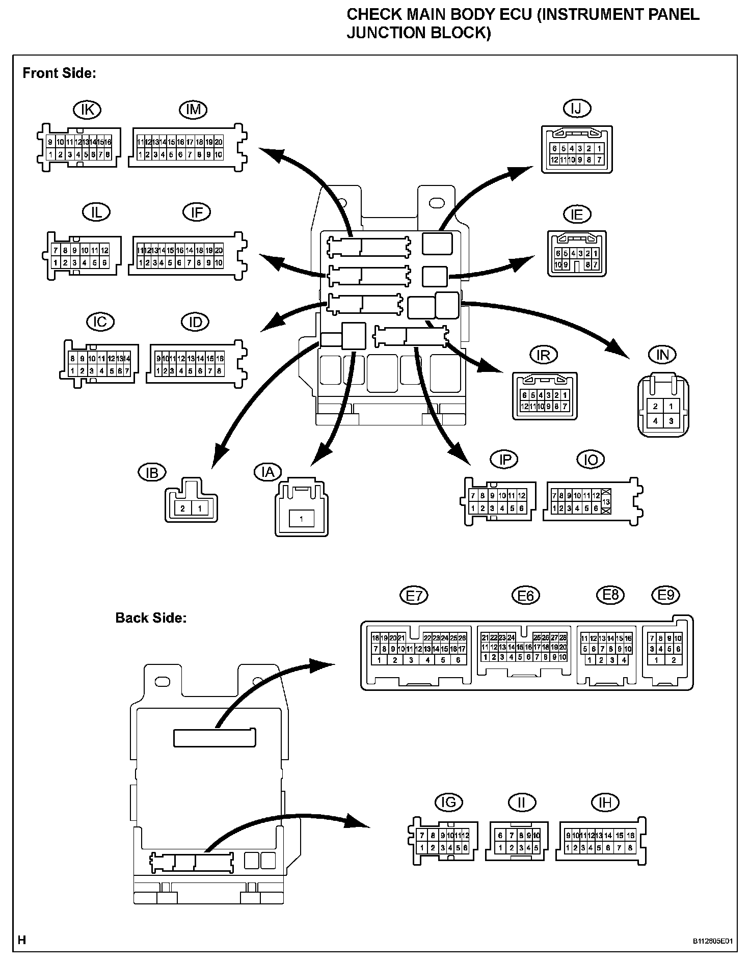 Terminals Of Control Module/Pinouts - Check Main Body ECU(Instrument Panel Junction Block) (Part 1):