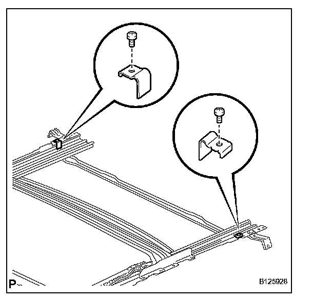 b. Install the sliding roof piece sub-assemblies LH and RH with the 2 screws.