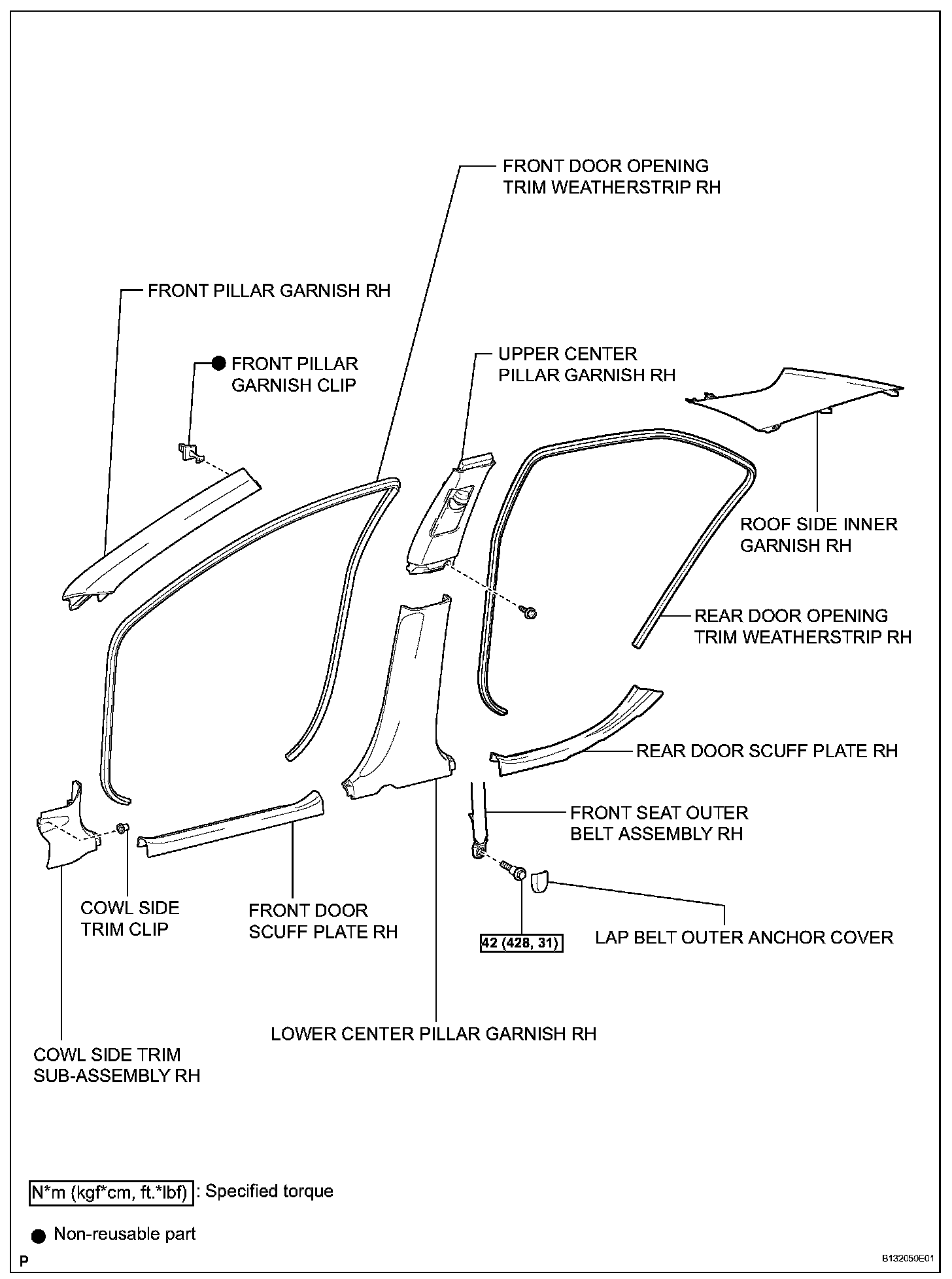 32. INSTALL UPPER CENTER PILLAR GARNISH RH