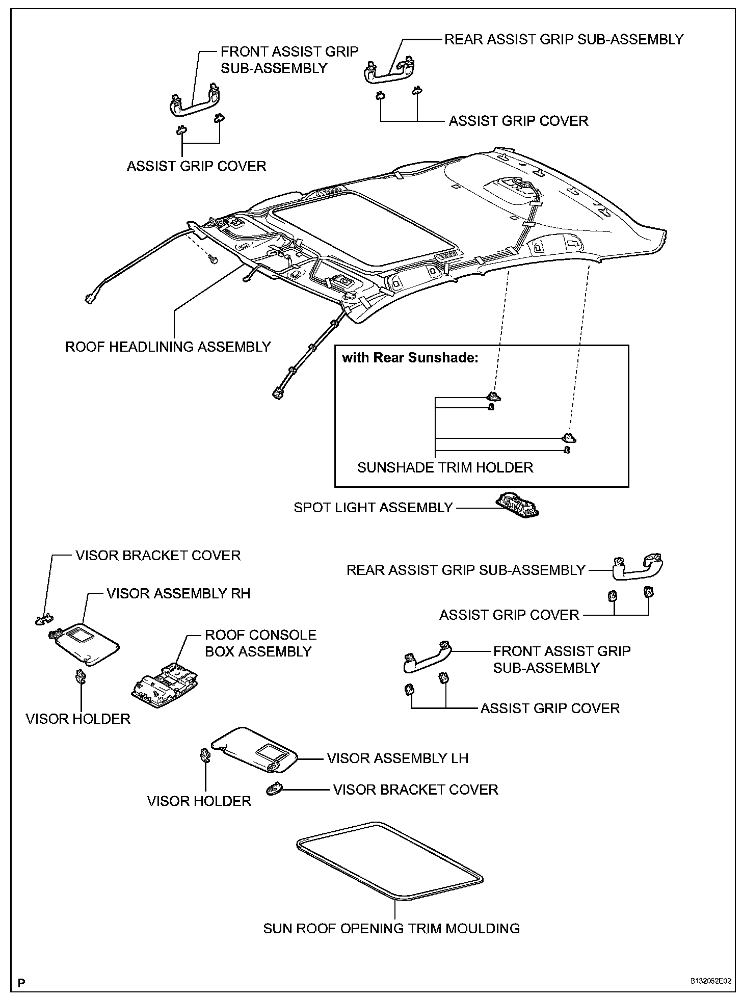 12. INSTALL SUNSHADE TRIM HOLDER (w/ Rear Sunshade)