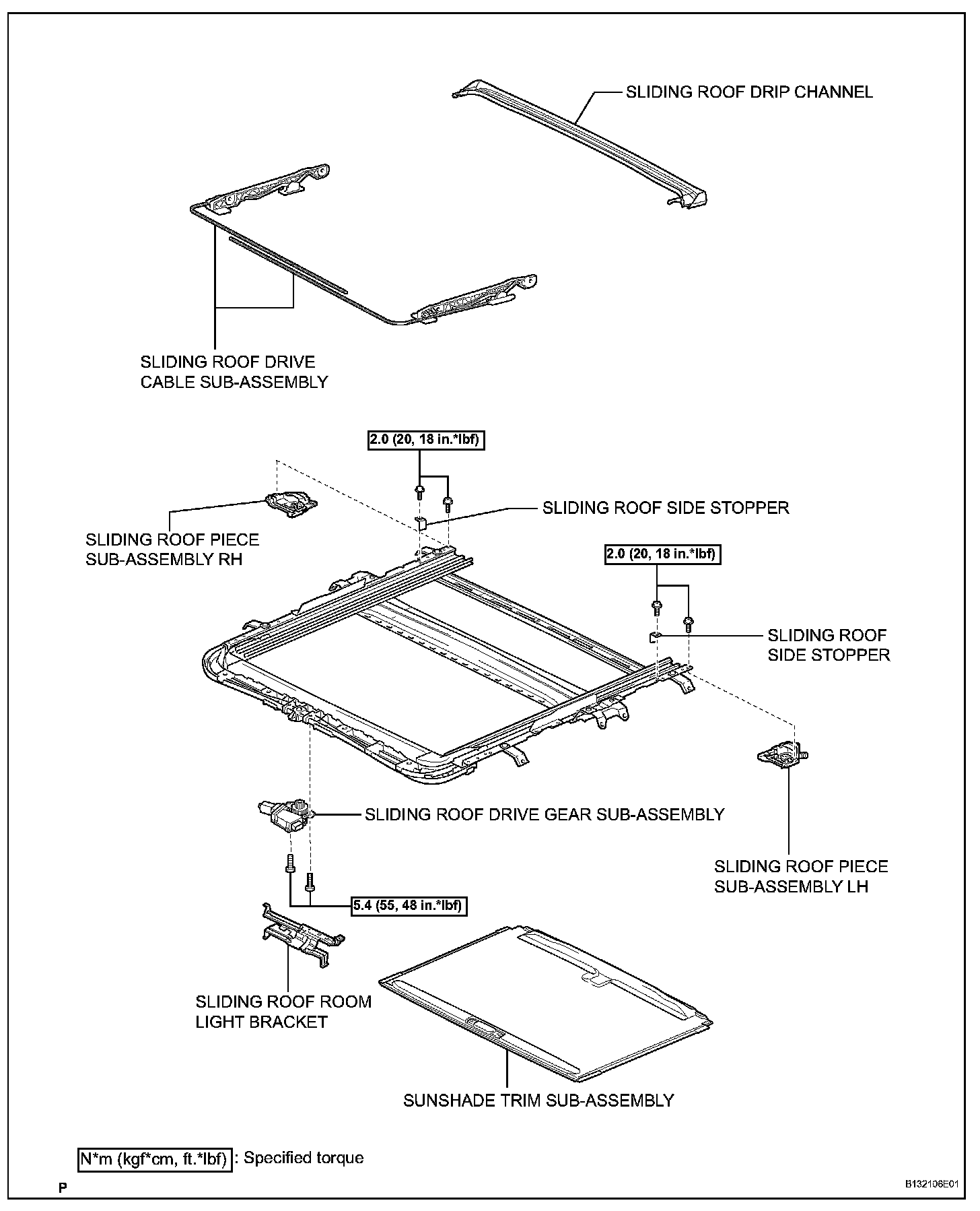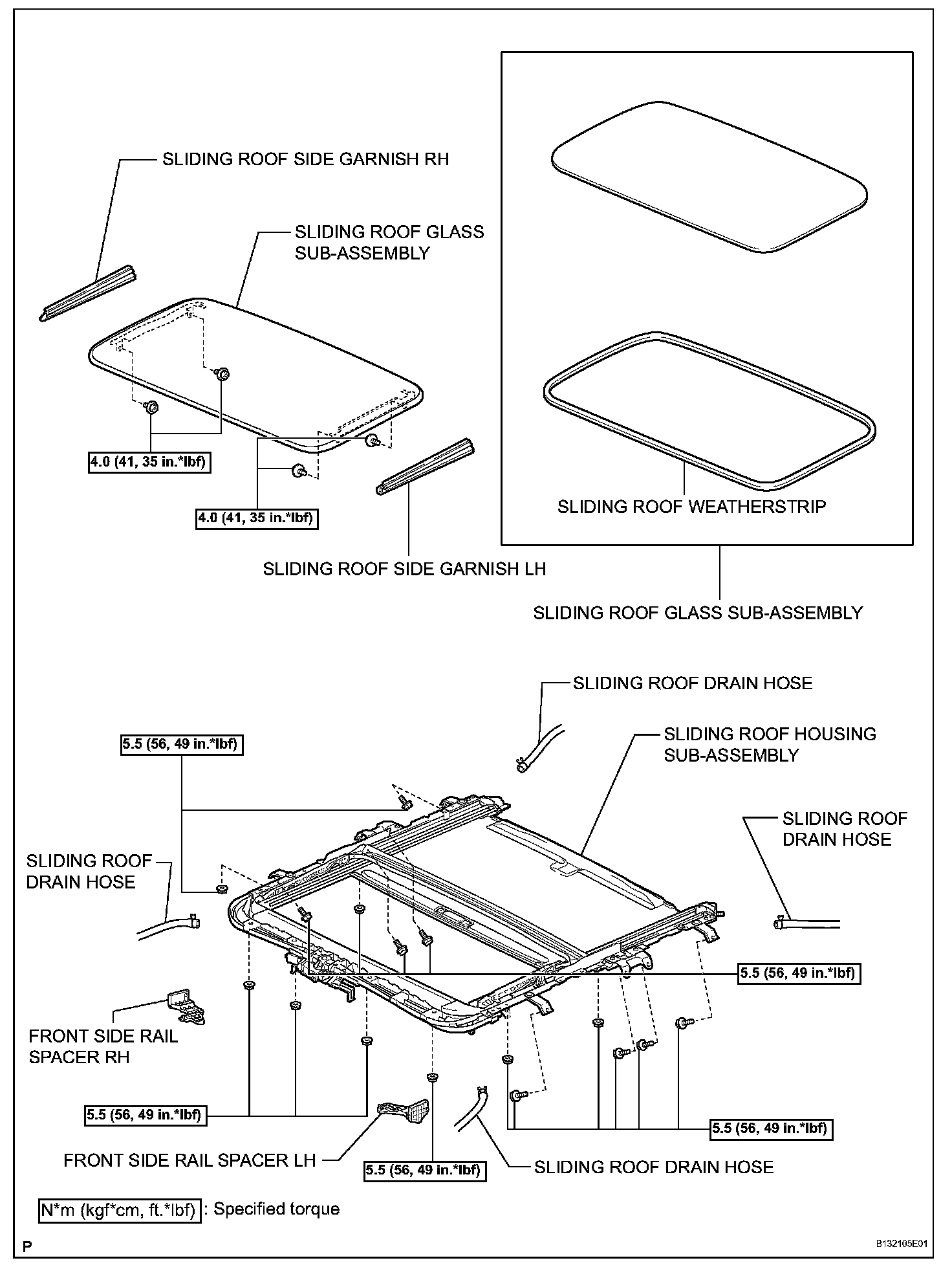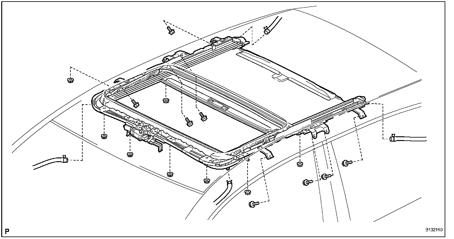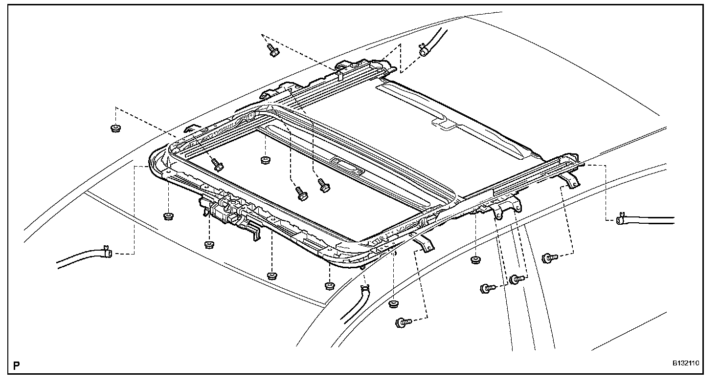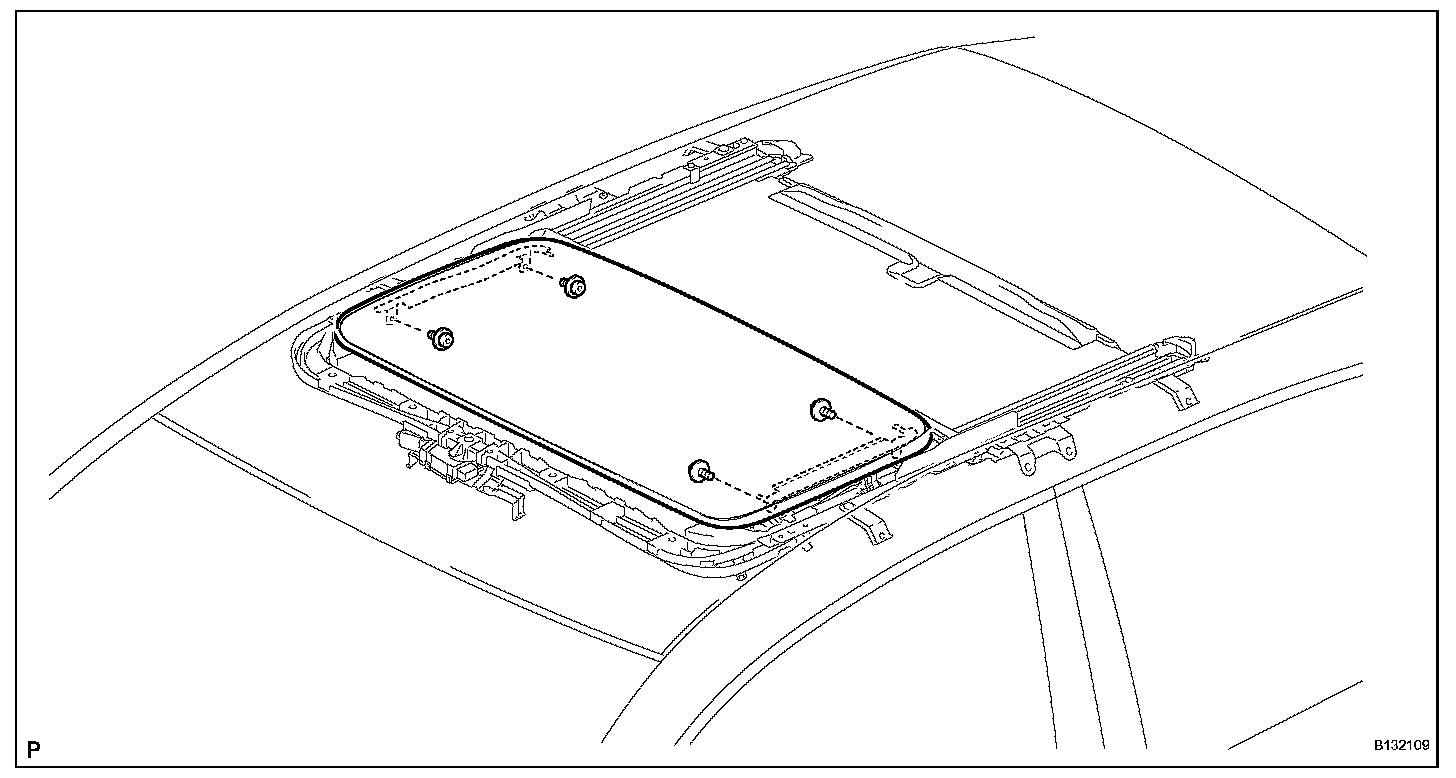 d. After adjusting the sliding roof glass, using a T25 "TORX" driver, install the sliding roof glass sub-assembly with the 4 screws.