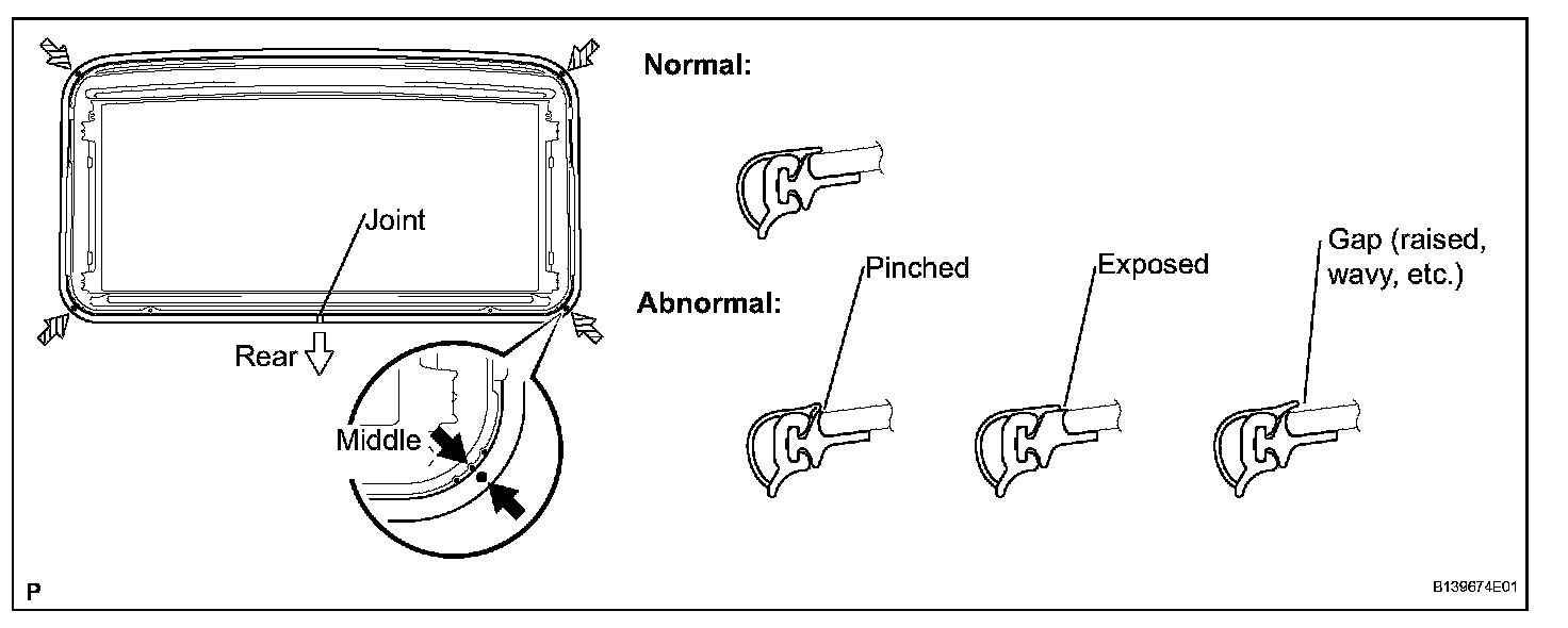 a. After adjusting the sliding roof glass sub-assembly, inspect for water leak.