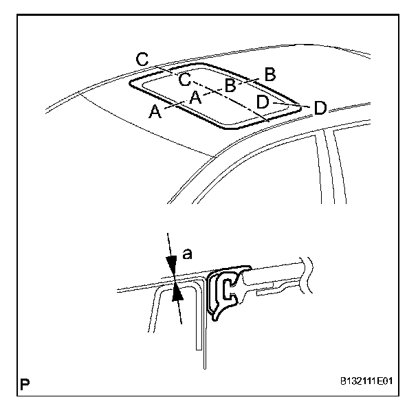 1. Check the difference in level for "a" between the roof panel and the upper surface of the weatherstrip when the sliding roof glass is fully closed.