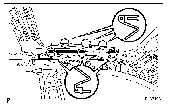 a. Disengage the 6 claws and remove the sliding roof side garnish LH.