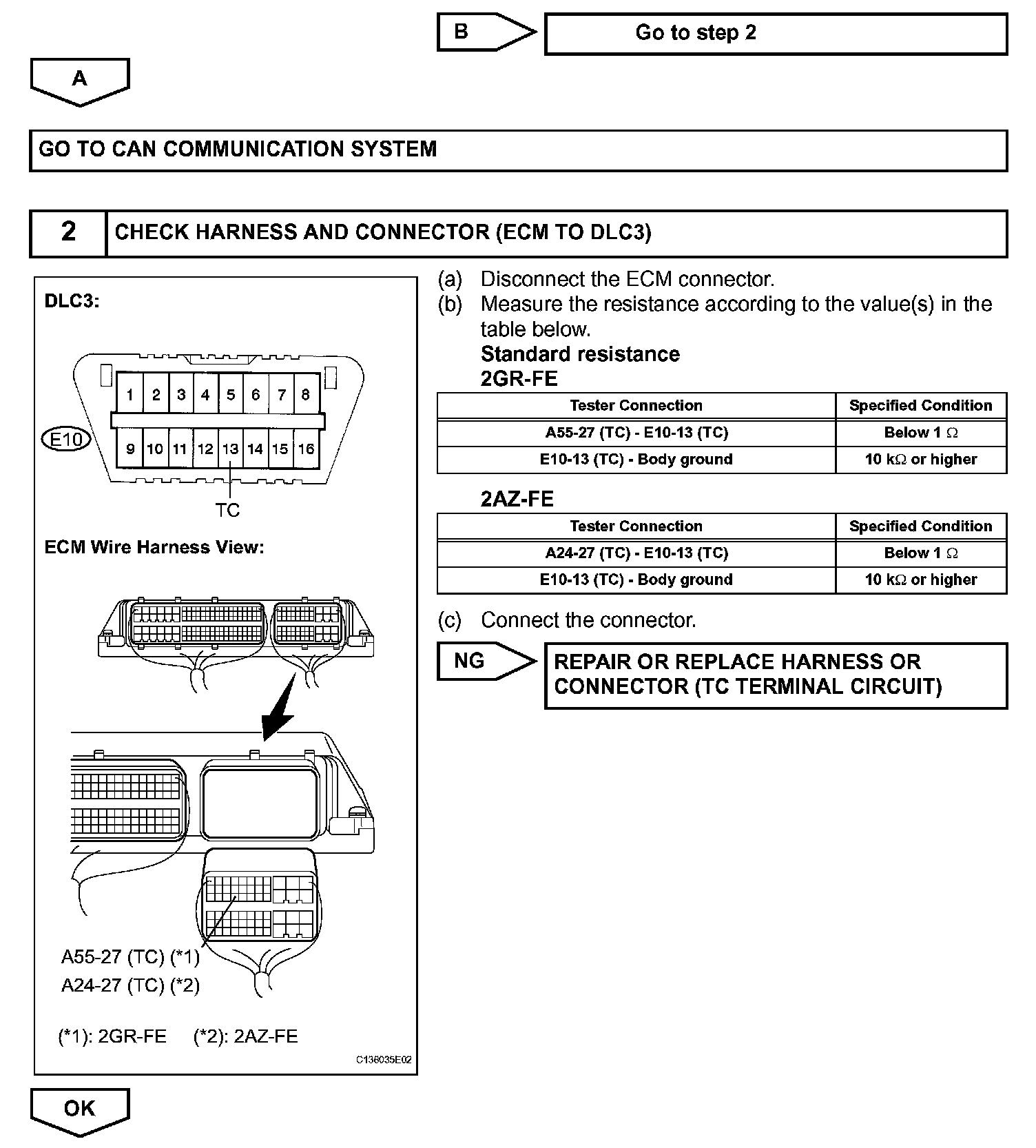 HINT: When warning lights continue to blink, a ground short in the wiring of terminal TC of the DLC3 or an internal ground short in one or more ECUs is suspected.