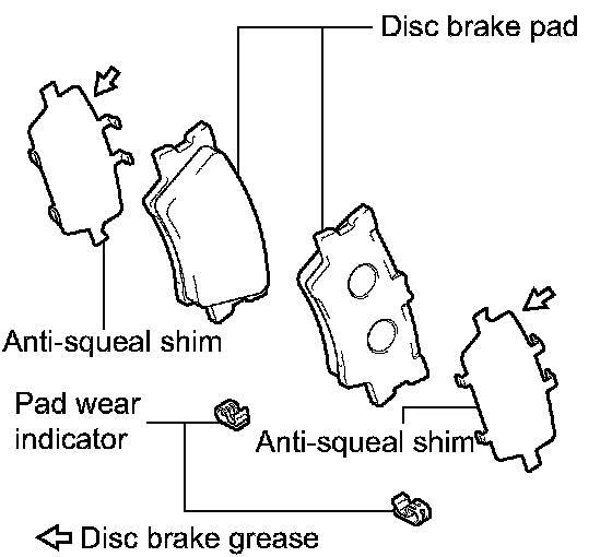 - When replacing worn pads, the anti-squeal shims must be replaced together with the pads.