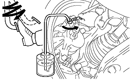 NOTICE: Bleed the air from the brake line of the wheel furthest from the master cylinder.