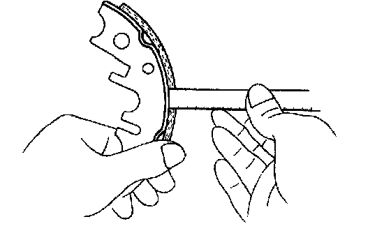 (a) Apply chalk to the inside surface of the disc, then grind down the brake shoe lining to fit the disc.