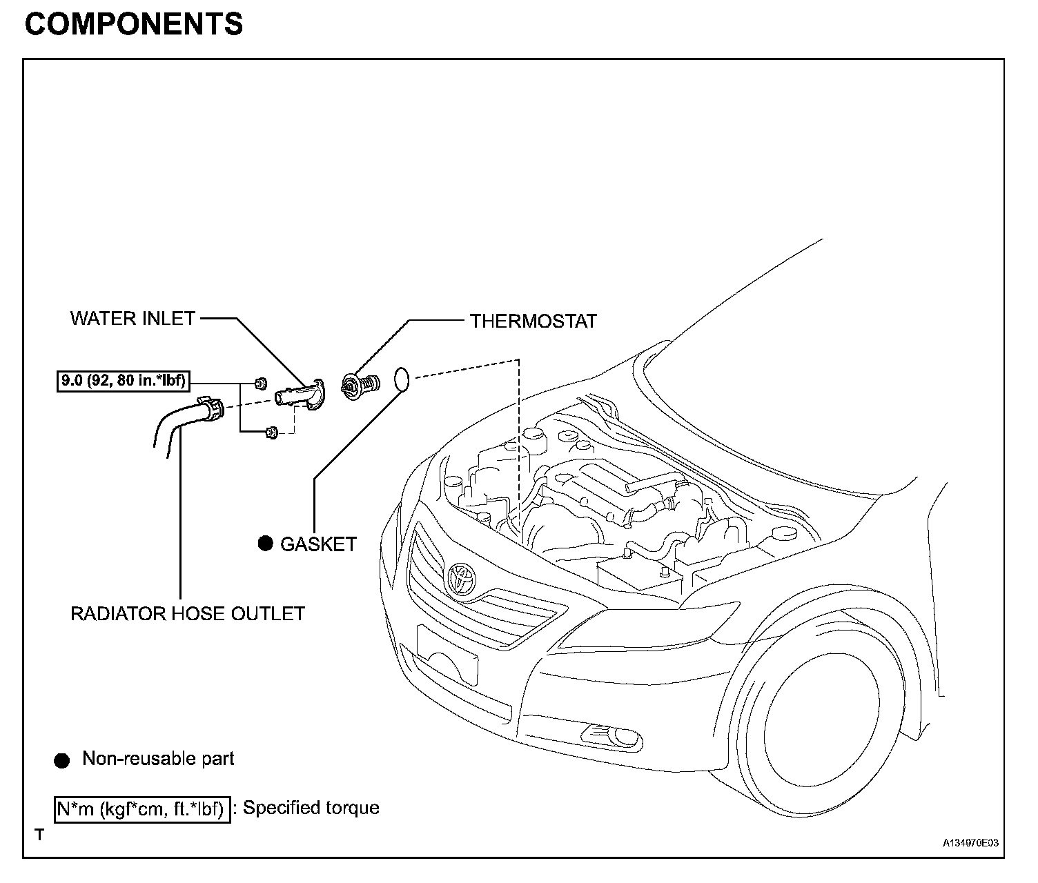 (e) Check that the valve is fully closed when the thermostat is at low temperatures (below 77°C (171°F)).