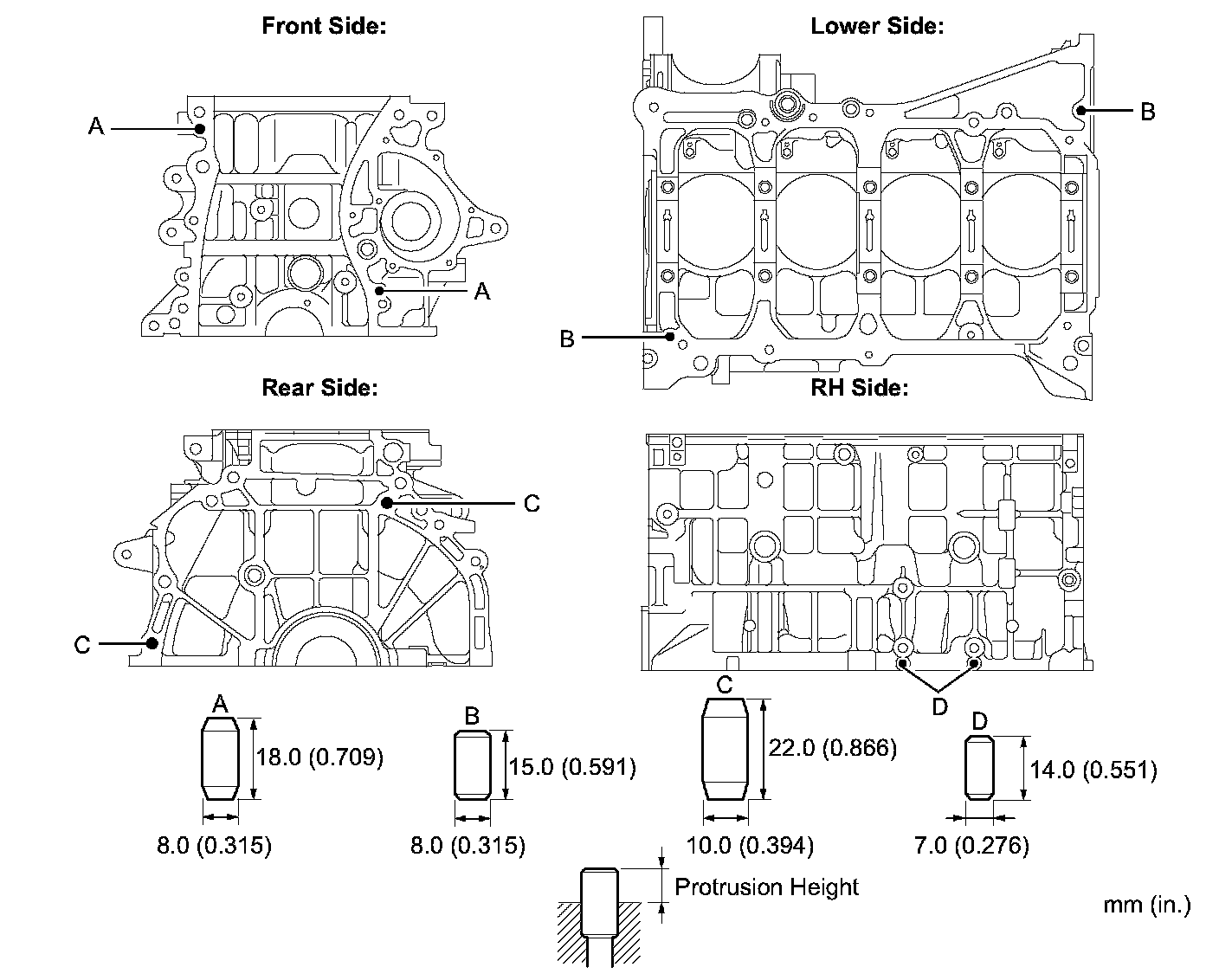 Stud Bolt B 22 Nm (220 kgf-cm, 16 ft. lbs.)