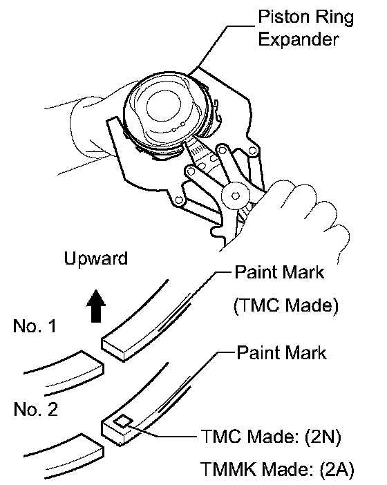 NOTICE: Install the compression ring No. 2 with the code mark (2N and 2A) facing upward.
